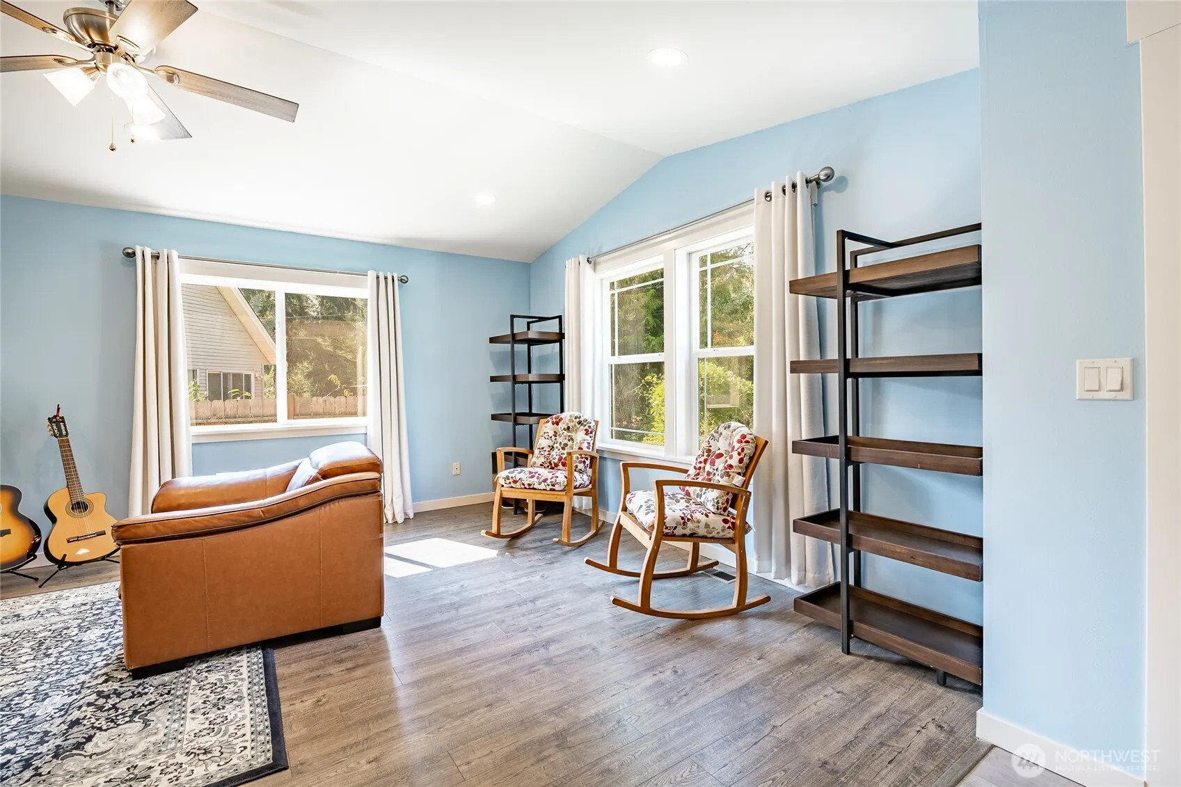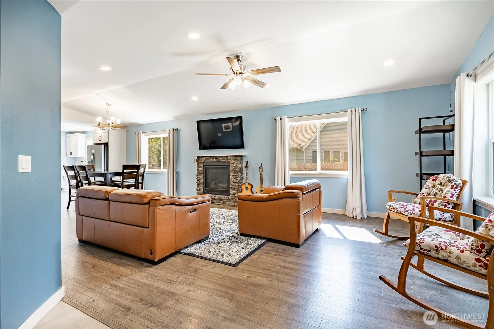 Tucked away on a quiet cul-de-sac, this 1,600 sq ft single-level home offers comfort and style. Open-concept with high ceilings, cozy gas fireplace, and large windows. This home has beautiful hard-surface flooring and a contemporary kitchen featuring granite countertops, white cabinetry, and stainless-steel appliances. The primary suite includes a walk-in closet & private full bath. Two additional bedrooms, and a well-appointed guest bath with quartz vanity and large tub/shower, provide plenty of space for guests, or office. Enjoy a fully fenced backyard with deck, fruit trees, and space for gardening or gatherings. Large two-car garage. No HOA so bring your RV or boat, just minutes away from Silver Lake. It’s all you want and more!