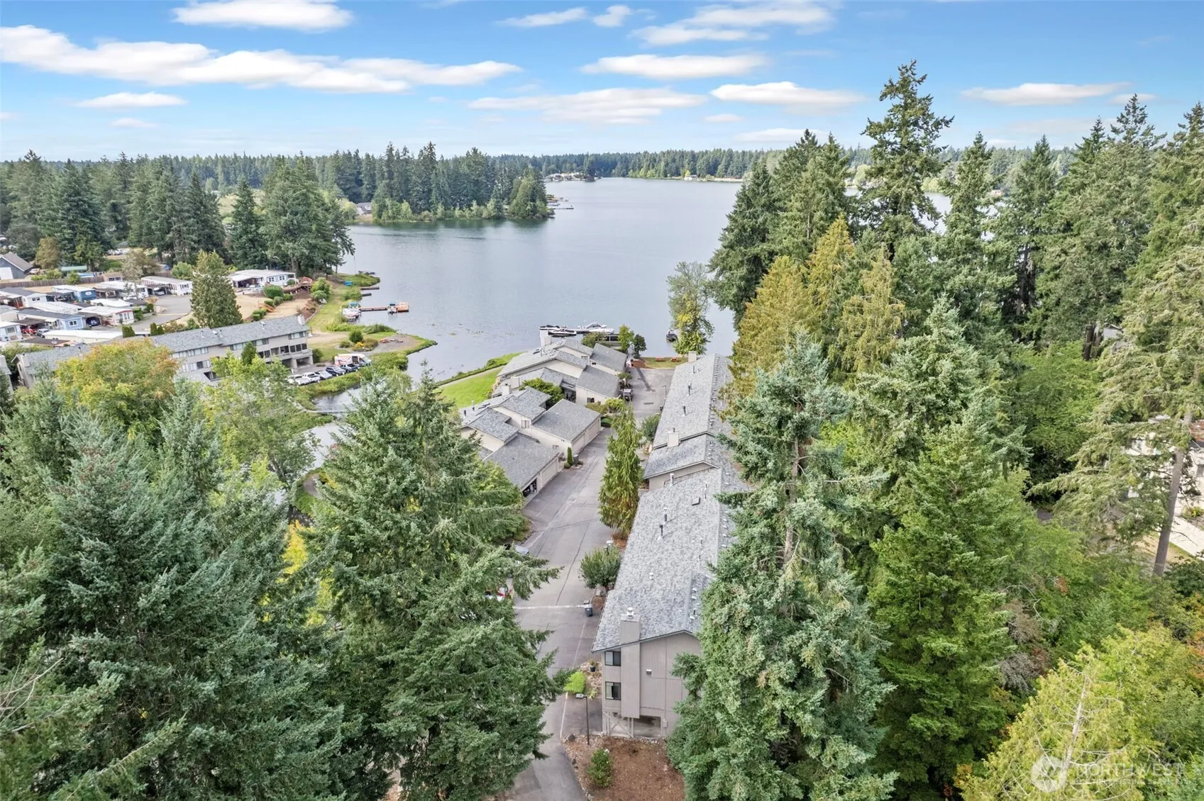 Updated in 2023 with a refreshed kitchen and laminate flooring, this private end-unit condo in gated Coffee Creek offers serene Lake Spanaway views. The HOA recently resurfaced the front balcony, while the expanded back veranda—exclusive to this unit—backs to a peaceful greenbelt. Inside features custom honeycomb blinds, added attic insulation, and a spacious primary suite with bath and walk-in closet. Built-in workshop and shelving in the garage plus extra storage add convenience. Enjoy community amenities including pool, tennis, RV parking, boat launch, moorage, and clubhouse. Lead-based paint testing complete—no lead present. Hurry, this one won’t last!