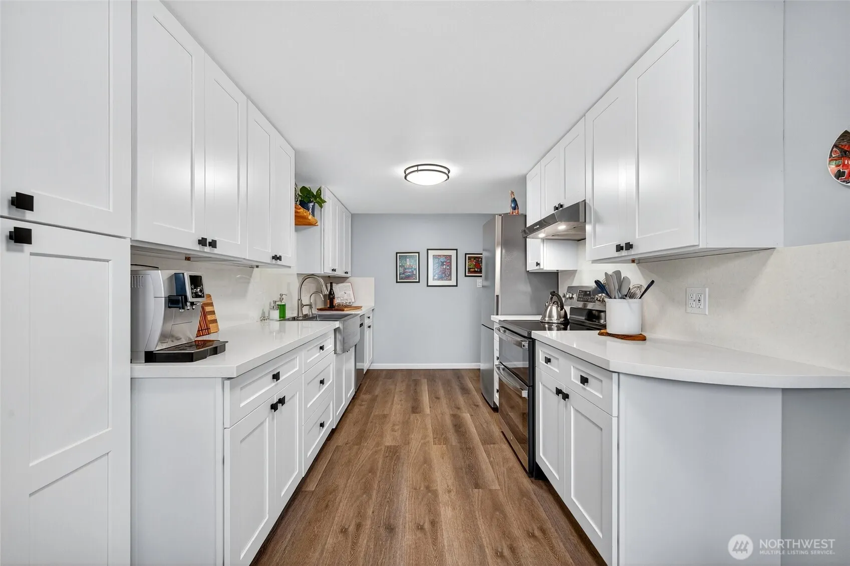 Exquisite FULLY remodeled unit with peek-a-boo Sound views, privacy & quiet – all conveniently located in the heart of Edmonds! Bright spacious kitchen features quartz counters, S/S appl, new cabinets & lg. apron sink. Powder room and Bath offer LVP flooring & walk-in-shower w/custom lighting & faucets. Enjoy tailored closet built-ins, a (rare) proper dining room, private balcony & built-in office nook. All new windows, W/D and carpet come w/transferable warranty. New wall heaters. Plus! spacious walk-in storage conveniently located across from unit. Outstanding HOA w/strong reserve funding as well as newer roof, siding, electrical panels & ext. paint. Explore farmers markets, the beach, shops & restaurants right from your front door!
