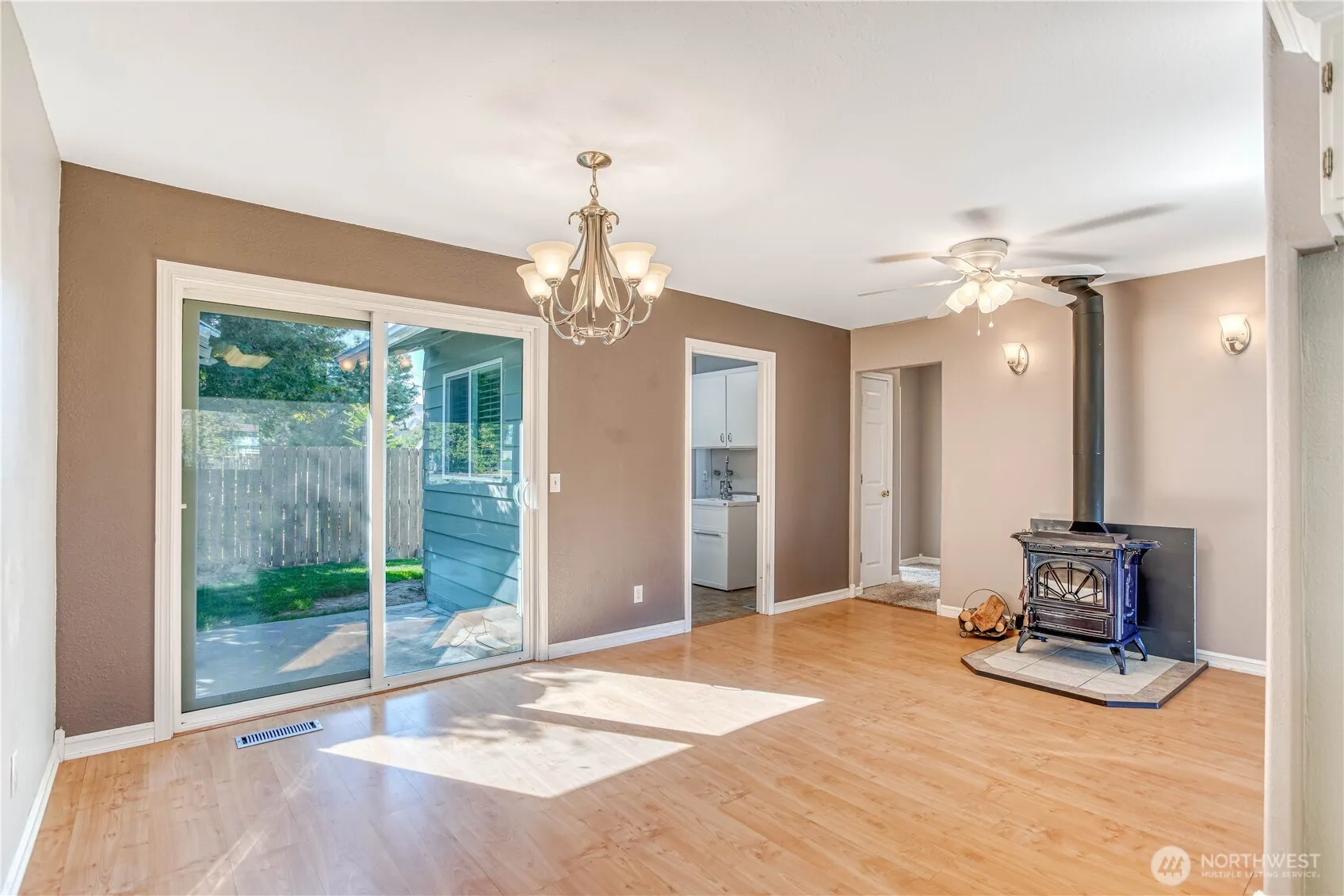 Cute, well kept 3 bed, 1.75 bath rambler with 1,312 sq ft of living space. Updated kitchen with quartz countertops, tile showers, and great natural light. Cozy wood stove, speaker system wiring, and heated oversized 2-car garage. Enjoy the private backyard with a covered deck—perfect for relaxing or entertaining.