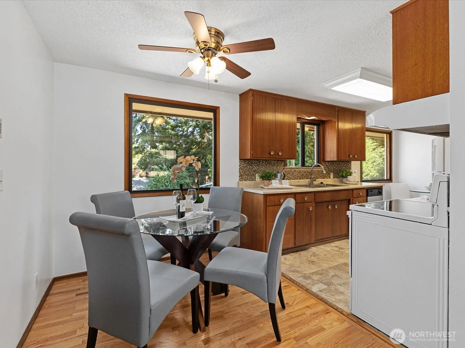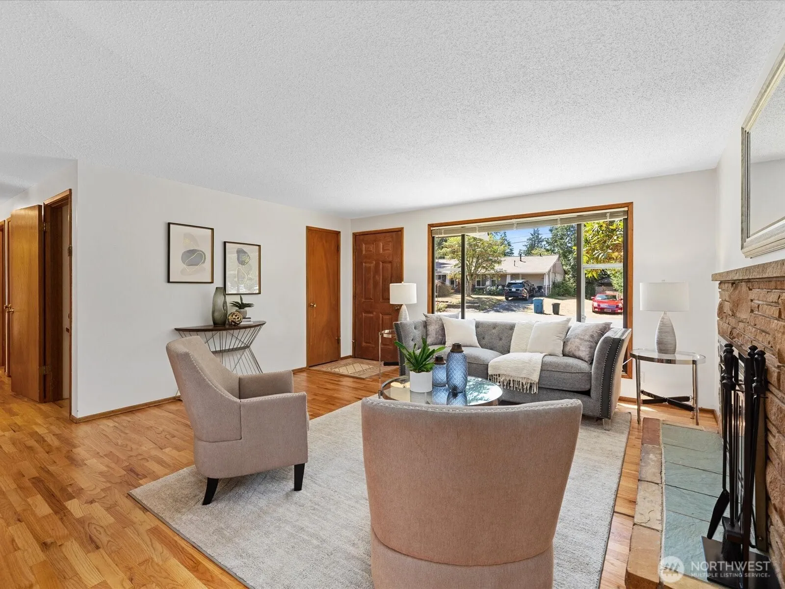 Spacious rambler with daylight basement on nearly quarter acre corner lot offers classic Edmonds mid-century charm! Refinished hardwoods & genuine wood kitchen cabinets grace the main floor along with pleasant tree views in back, being perched above neighbors. 3 beds, full bath, kitchen w/ nook + pantry, garage access as well as dining/living space w/ firepl on main. Spectacular 1272 sq ft daylight bsmt w/ potential for multi-gen living or design for separate unit! This area boasts family rm w/ firepl, rec rm w/ bonus nook, laundry rm, 3/4 bath, and den w/ 2 closets. New roof, exterior paint, and more. 3 parks & well rated Seaview Elem Sch within walking distance, including approx 22 acre Lynndale Park! Seller inspections available.