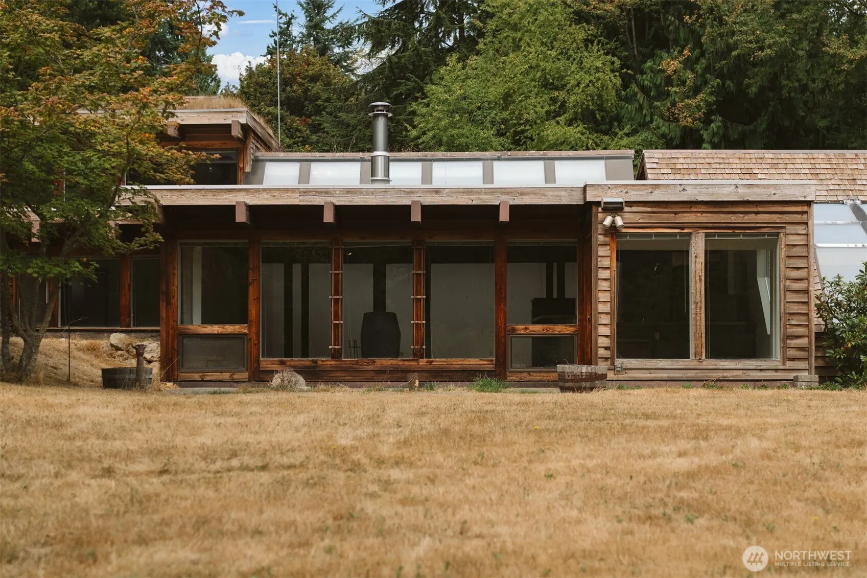 Nestled in a sunny clearing on 1.24 acres with mature trees, this well built Guemes Island home blends comfort with passive solar design and gas forced air, combining natural convection with modern heating designed for year round comfort. The main level offers an open format with kitchen, great room with wood burning fireplace, light & bright dining area. Main level also includes large walk in pantry, one bedroom with an additional finished room, and the lower level of the upstairs primary suite ideal for an office. A light filled solarium invites year round gardening, morning coffee, and winter sun. West side location is a short walk to Dog Wood’s Preserve, Kelly’s Point, and beach access for sunset strolls and island adventures.