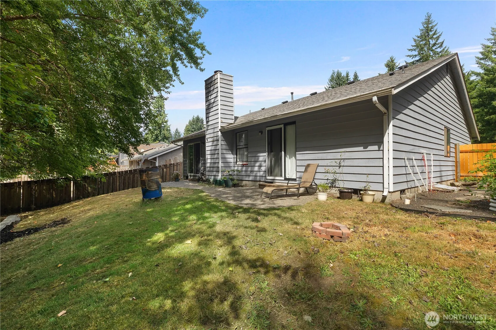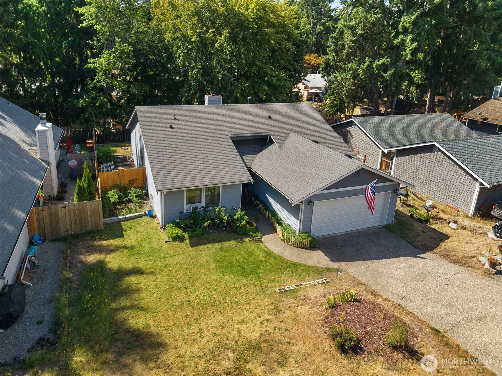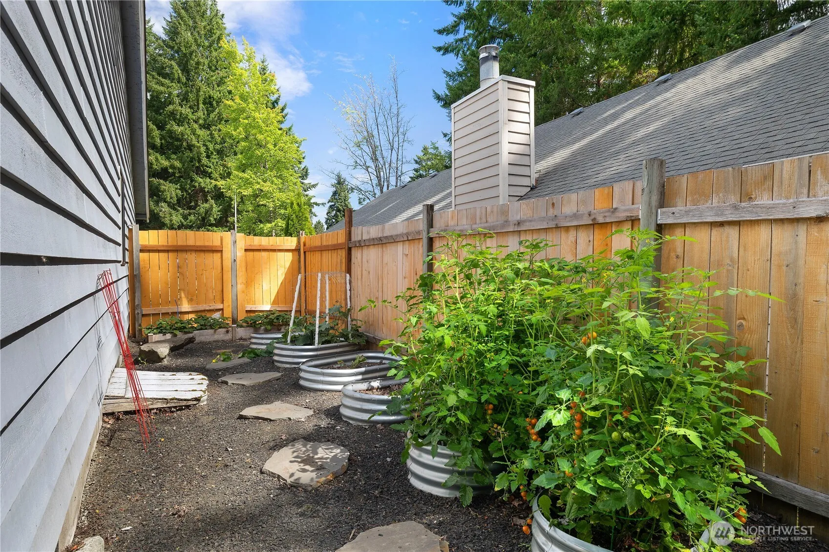 Beautiful 3 bed 2 bath home with granite countertops in bathrooms and kitchen, stainless steel appliances, breakfast bar, space for table and chairs. Bright, open living room with abundant natural light throughout house. Primary suite features walk-in closet, ensuite bathroom, and sliding door access to the backyard. Dining room opens to a spacious backyard patio. Fully fenced side and backyard with multiple garden boxes hosting a variety of plants such as strawberries, raspberries, blueberries, roses, and hydrangeas. Front yard includes apple and rainier cherry saplings, lavender, rosemary, and tulips. Extra parking beside driveway. Two community playgrounds and basketball court. Only 2 minutes from Long Lake. Come see this stunning home!