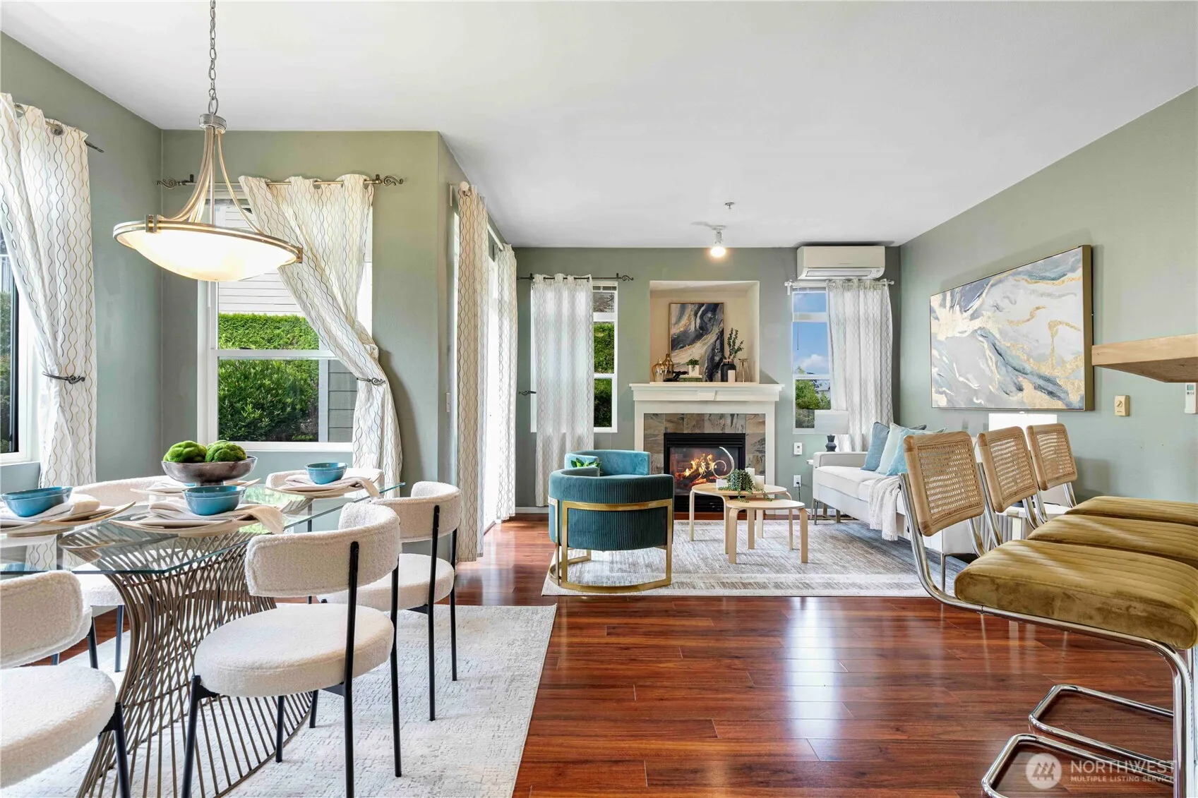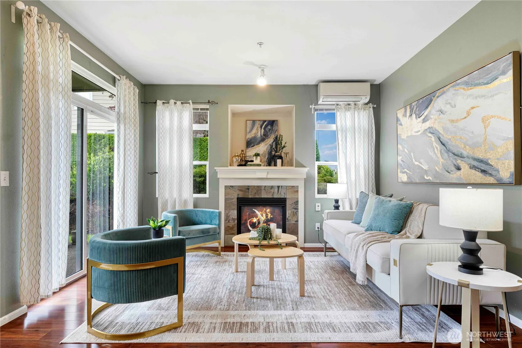 Bright & Updated 3 Bed 2 Bath End Unit in Cameray! Enjoy rare ground-floor living with no stairs, featuring 9’ ceilings, gleaming hardwoods, premium carpet, and a private patio overlooking the HOA-maintained lawn and greenbelt. The large kitchen boasts maple cabinets, breakfast bar, and ample storage, complemented by $40K in upgrades throughout the home. The oversized primary suite includes a cozy sitting area, walk-in closet, and attached bath. Comfort is effortless with an energy-efficient ductless heat pump with A/C, plus an attached 1-car garage. Community amenities include clubhouse, pool, hot tub, and trail access. Well priced for a quick sale. Located in the sought-after Lake Washington School District. No rental cap. Pre-inspected!