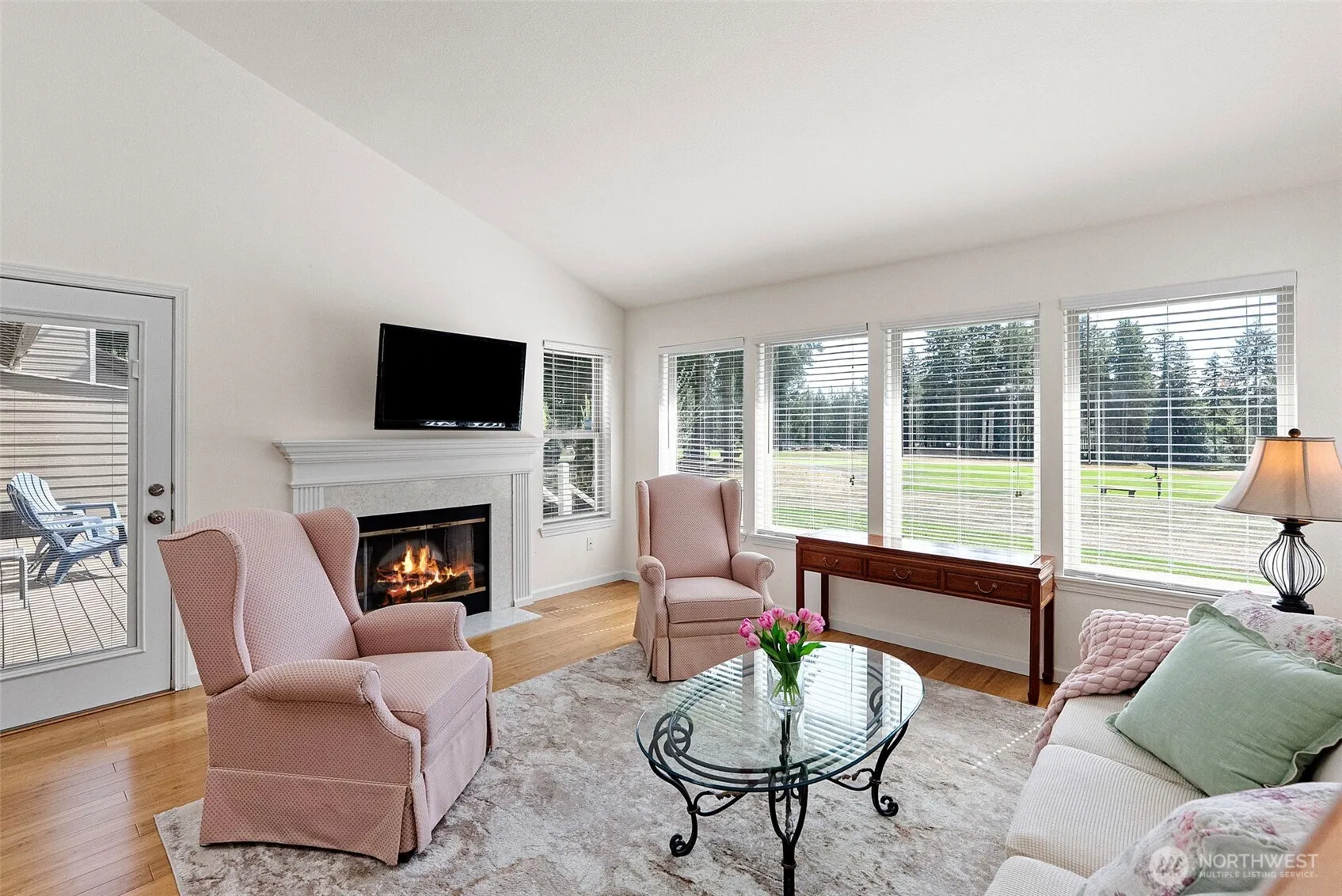 Step into effortless living in this beautifully updated one-level condo in the sought-after Deerhaven Condos at Lakeland Village. Take in serene golf course views from your low-maintenance Trex deck. Inside, enjoy a gourmet kitchen with quartz counters and newer appliances, central A/C, rich bamboo flooring, and abundant natural light. Spacious 2-car garage. Enjoy a vibrant community with a 27-hole PGA golf course, spring-fed lake, dining, beaches, playground, and more. Welcome to relaxed Pacific Northwest living!