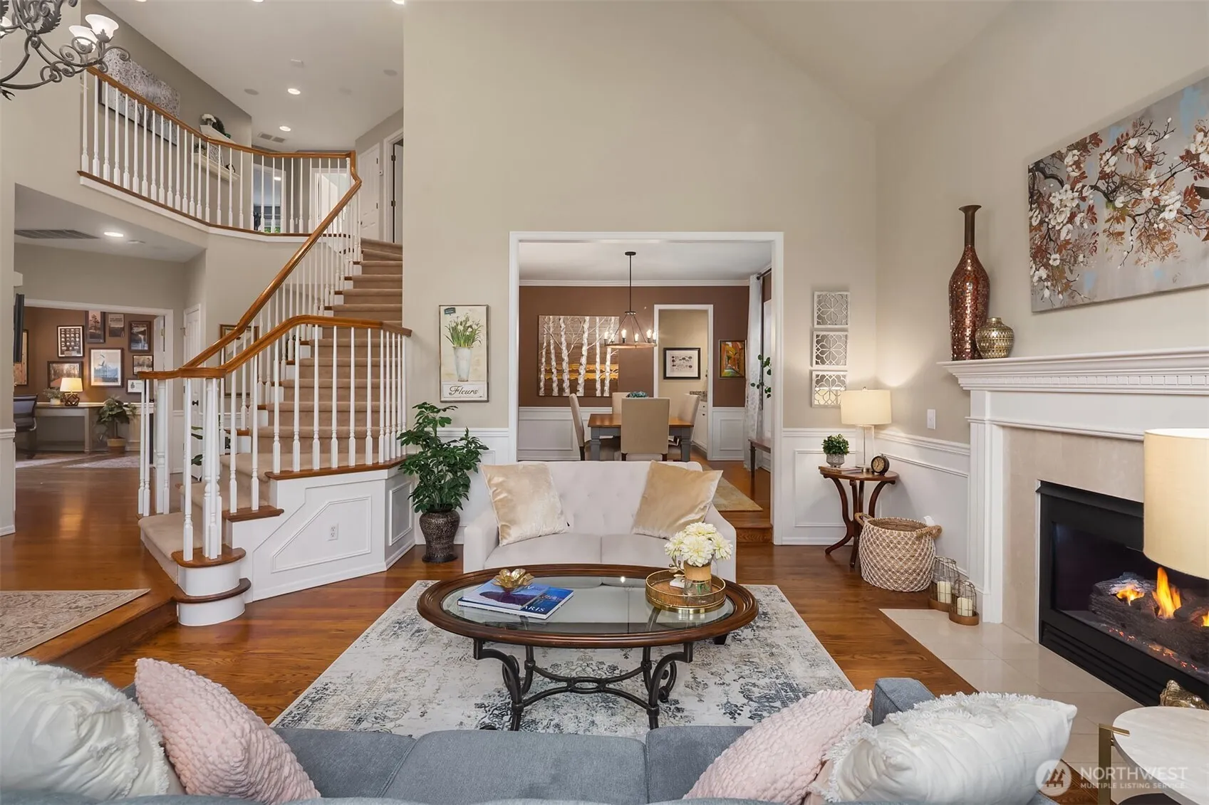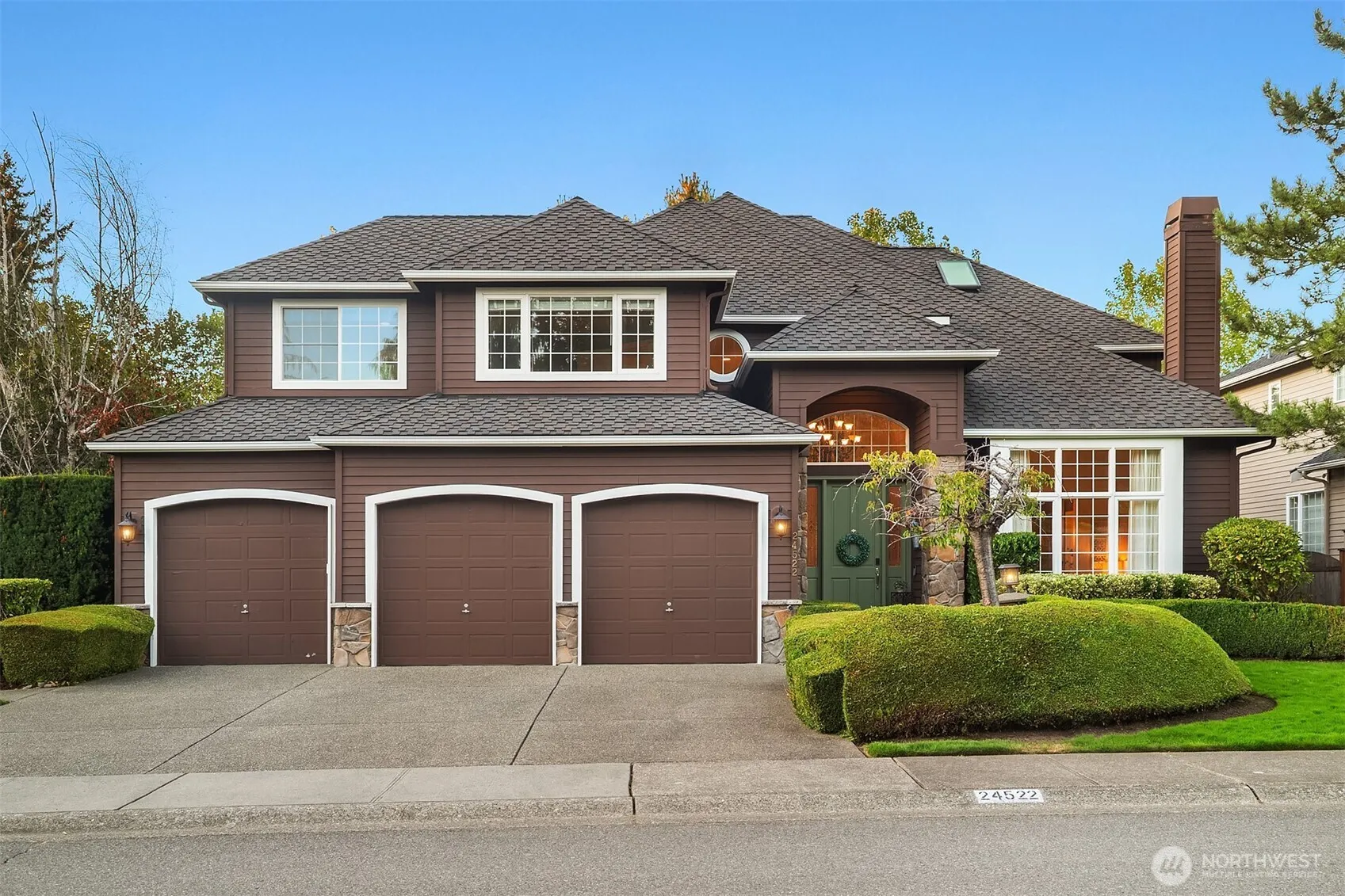 Impeccable Murray Franklyn in sought-after Montrachet! Grand vaulted entry welcomes you to refinished hardwoods, updated staircase, and new carpet upstairs. Gourmet kitchen with entertainment island opens to a warm family room with updated fireplace facade. Main level features a spacious office/den that could serve as a 5th bedroom. Upstairs offers 4 bedrooms plus a large bonus room. Primary suite with new bath countertops, tiled bath & walk-in closet. Recent upgrades include sauna with electrical hookup, TREX deck, EV charger, exterior paint, and refreshed baths. Expansive, fully fenced backyard with full irrigation, new concrete pathways and platforms. Close to Plateau Golf & CC & Soaring Eagle Park. Desirable Lake WA Schools!