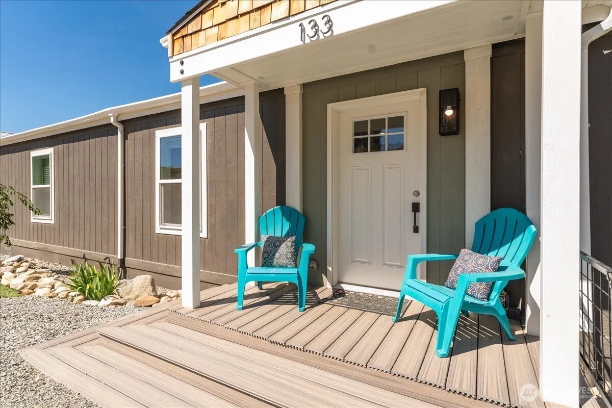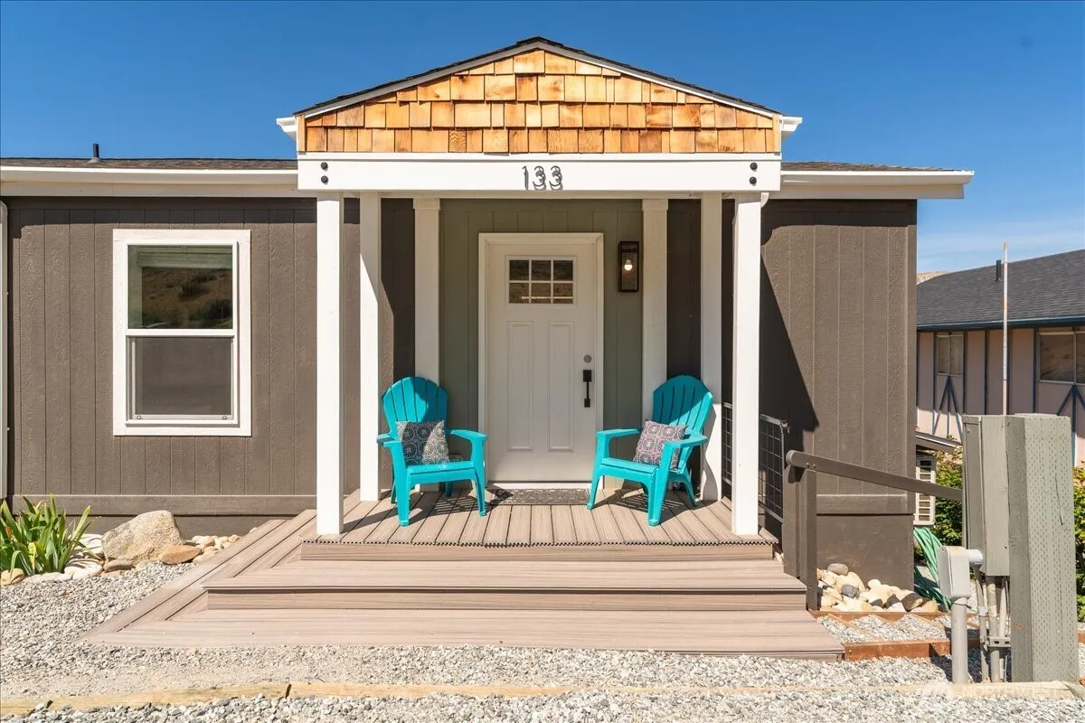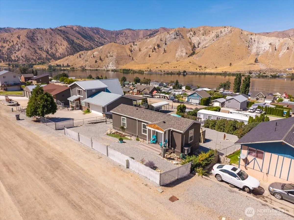 EXPANSIVE COLUMBIA RIVER VIEWS! Charming turnkey-furnished 1bd/1bth home in Bauer’s Landing, a Columbia River waterfront community. Built in 2023, this 660sf home features welcoming front porch, open-concept layout w/ living room, full kitchen w/ stainless steel appliances, modern bath, separate laundry area & fireplace unit. Ideal for those seeking a compact home w/ modern amenities, floor plan blends comfort, style & affordability in a thoughtfully-designed space. Multiple decks & patios on elevated lot offer stunning river, mountain & territorial views. Easy access to community amenities including sandy beach, grassy park, boat launch, floating dock & bathrooms. Near Chelan & Wenatchee, ideal full-time residence, vacation home or rental.