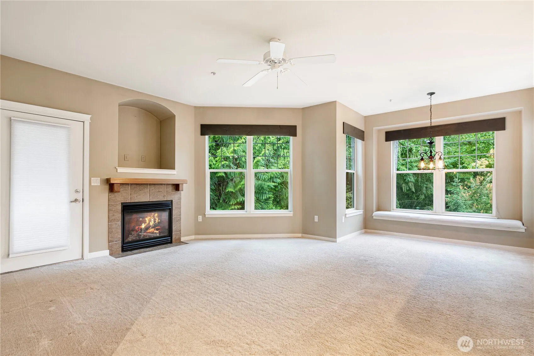 Amazing Immaculate main floor (no stairs) end unit. The best at Jacob’s Creek! Gated entry, park-like setting. Very private light filled spaces overlook private yard & protected wetlands. . Inside you will find the floor plan flows graciously from its private garage entrance, two master suites with balconies (primary bath with heated floors), a great room complimented with a gas fireplace along with a full size laundry room.