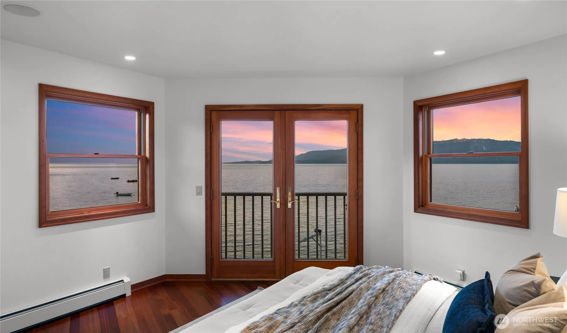 Welcome to a Moceri Construction masterpiece where Frank Lloyd Wright-inspired design meets Northwest craftsmanship. This Samish Island estate rests on half an acre with 100’ of low-bank waterfront, offering direct beach access and a professionally engineered bulkhead for peace of mind. Inside, vaulted ceilings, custom finishes, and water views from every room complement the thoughtful floor plan. The kitchen offers leathered granite countertops, cherry cabinetry, and abundant space for gathering. Upstairs, the primary suite features Brazilian cherry hardwoods, a spa-like bath with steam shower, and a balcony ideal for morning coffee. Experience a coastal lifestyle defined by timeless architecture and the natural beauty of Samish Island.