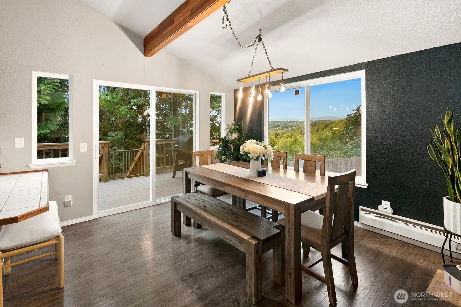 A rare opportunity on Machias Ridge! This 2-parcel property totals over 5 acres and offers views in a private, serene setting. The spacious split-level home has been thoughtfully updated with new electrical, a whole-home generator, new fireplace, flooring, and windows. The main level showcases vaulted ceilings with striking wood beams and an open, inviting layout. The lower level is perfect for entertaining, featuring a built-in bar with seating, lounge area, and a flex room with slider and French doors. Both an attached and detached garage provide ample parking, storage, or shop space. With its blend of comfort, function, and stunning scenery, this property is ideal for those seeking a versatile retreat with room to grow. RV hook up.