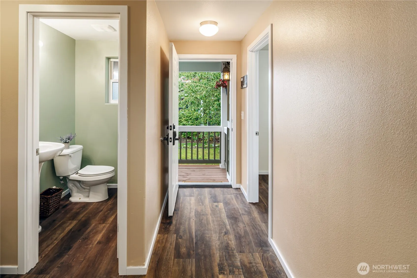 Beautiful 2-story that is nestled up against a greenbelt. This well cared for home has so much to offer a new buyer. The whole downstairs has new flooring, paint, trim and doors. The living area is open to the dining & kitchen offering infinite adaptability to any decor. The well-designed kitchen is efficient & makes cooking simple. The dining area has a slider leading out to the new deck for grilling or just relaxing. 4 bedrooms w/ ample space, 1 on the main floor that could be used as a den/office. The primary has its own bathroom & walk-in closet. Newer exterior paint, fully fenced yd that offers peace & tranquility. Neighborhood walking trail, gazebo & tables. Close to all amenities, bus, HWY 9 & I-5, All appliances stay! Dream no more!