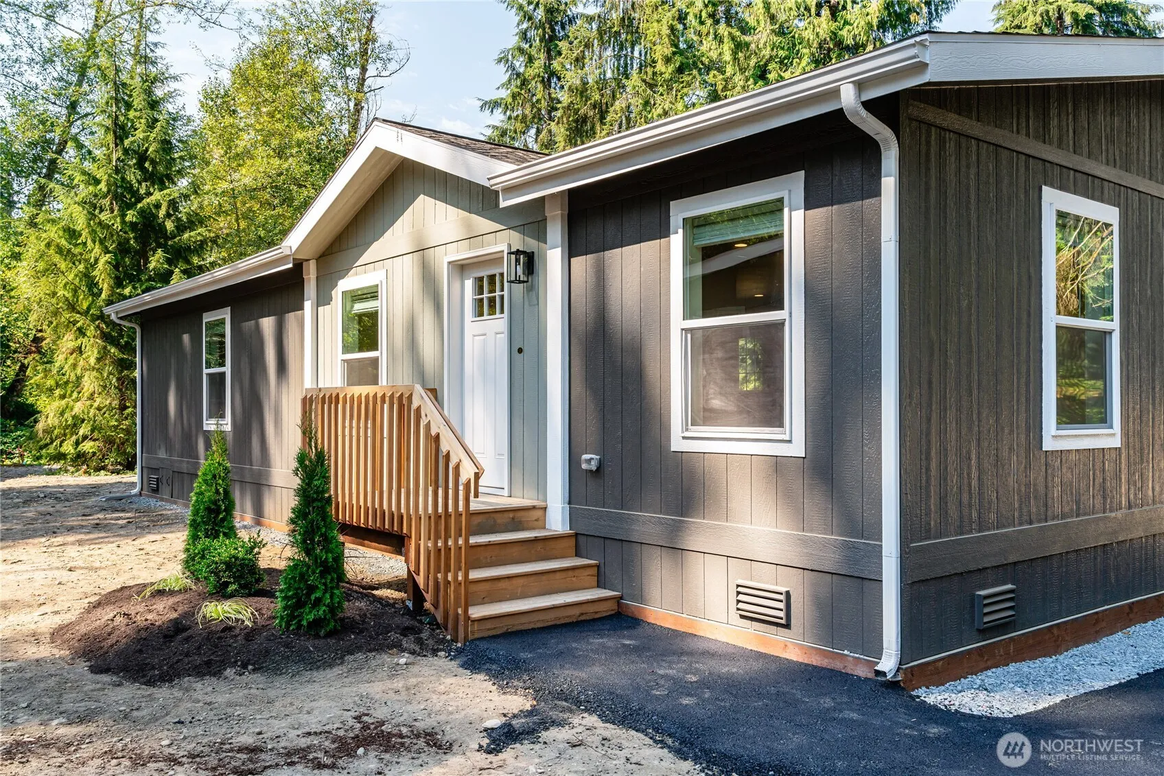 Discover this newly constructed modern home set on a generous lot. Home features an open kitchen equipped with abundant cabinets and storage, stainless steel appliances with private deck perfect for entertaining or unwinding. Diverse floorplan with two bedrooms and an additional bonus room, den or office. Located in an area of nature trails, incredible fishing within walking distance, and multitudes of outdoor recreation opportunities. Home is only a couple of miles from services and 20 minutes to Everett. Ready to move in with USDA, VA, FHA loans available. Home Warranty provided by manufacturer. No HOA. Landscaping to be completed by 09/09/2025.