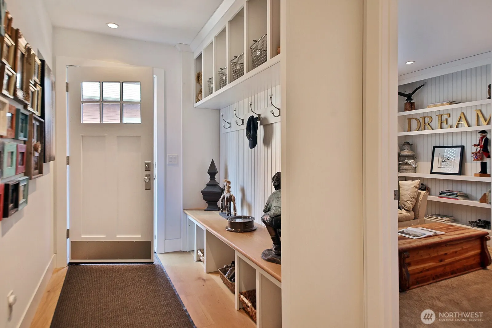 Charm meets artistry in this unforgettable Langley cottage, perfectly placed in the heart of Whidbey’s picturesque seaside village. Filled with timeless charm & character, offering two bedrooms & an office, this home welcomes you with a covered porch, wide-plank wood floors & a beautiful brick fireplace framed by custom built-ins. The bath features a Carrara marble vintage vanity, wainscoting & a subway tiled shower with hand painted accents. Plantation shutters, vintage style glass knobs, & wood doors add warmth and style. The kitchen is equally inviting with wood beamed ceilings & a subway tile back splash. With unique design elements throughout, this enchanting retreat is moments from Langley’s vibrant restaurants galleries & boutiques!
