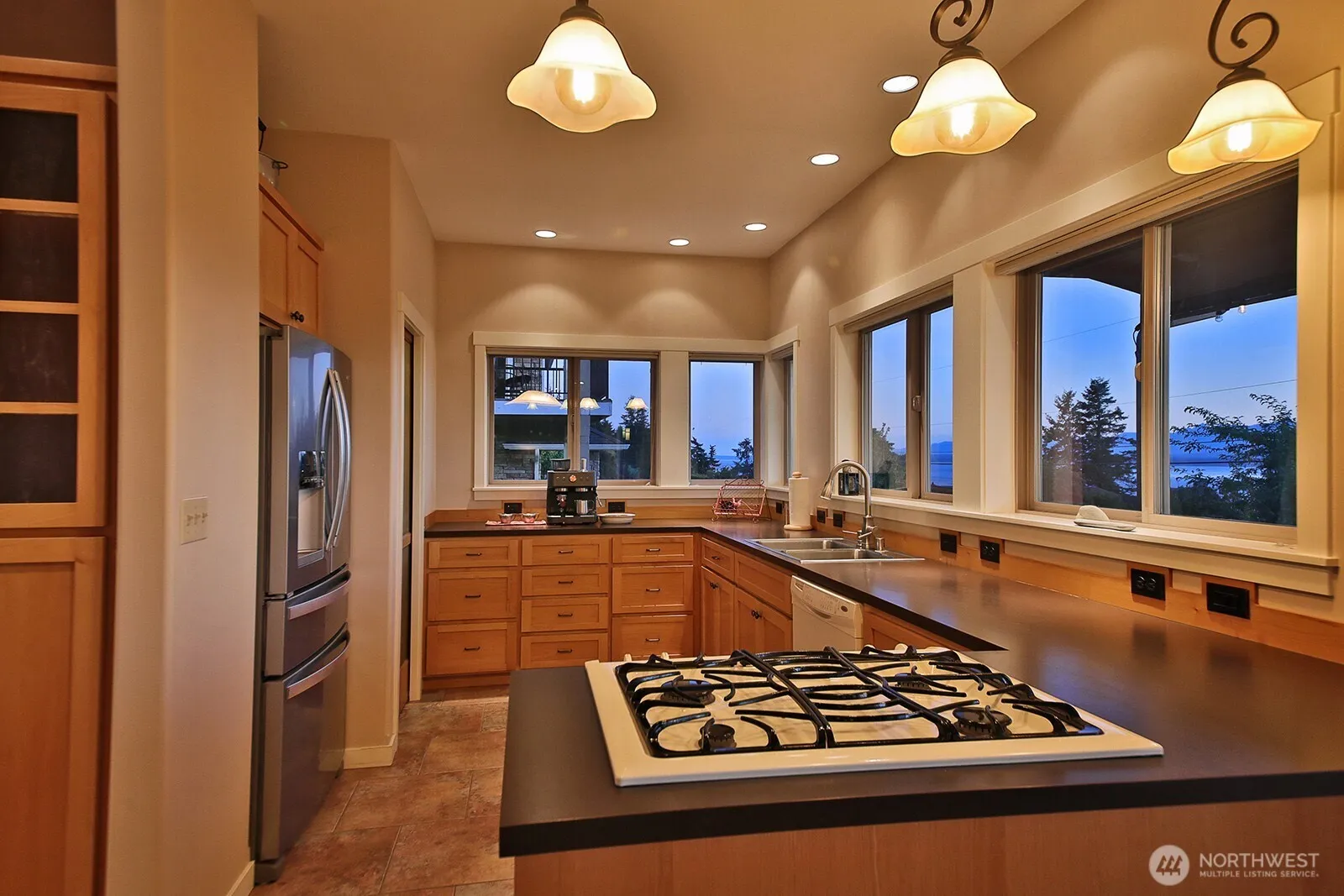 Enjoy an attractive, 2007 build single level home with sweeping westerly mountain and water views! Efficient floorplan of 2 bedrooms, 2 baths (full and .75), an office, laundry room plus open kitchen, living room, and dining areas with vaulted ceiling. Radiant in floor heat and file floors throughout. Propane fireplace with tile surround and built in cabinets. Laminate counters and alder wood cabinets, tile bath surround and shower. Wonderful large 464sq’ covered front porch, perfect for dining and relaxing. All on a generous 0.34± acre lot with fenced rear yard, raised beds and garden area. Detached garage with covered breezeway to house. Wide angle west views. Beach access and parking, community picnic area, clubhouse, sports court. WOW!