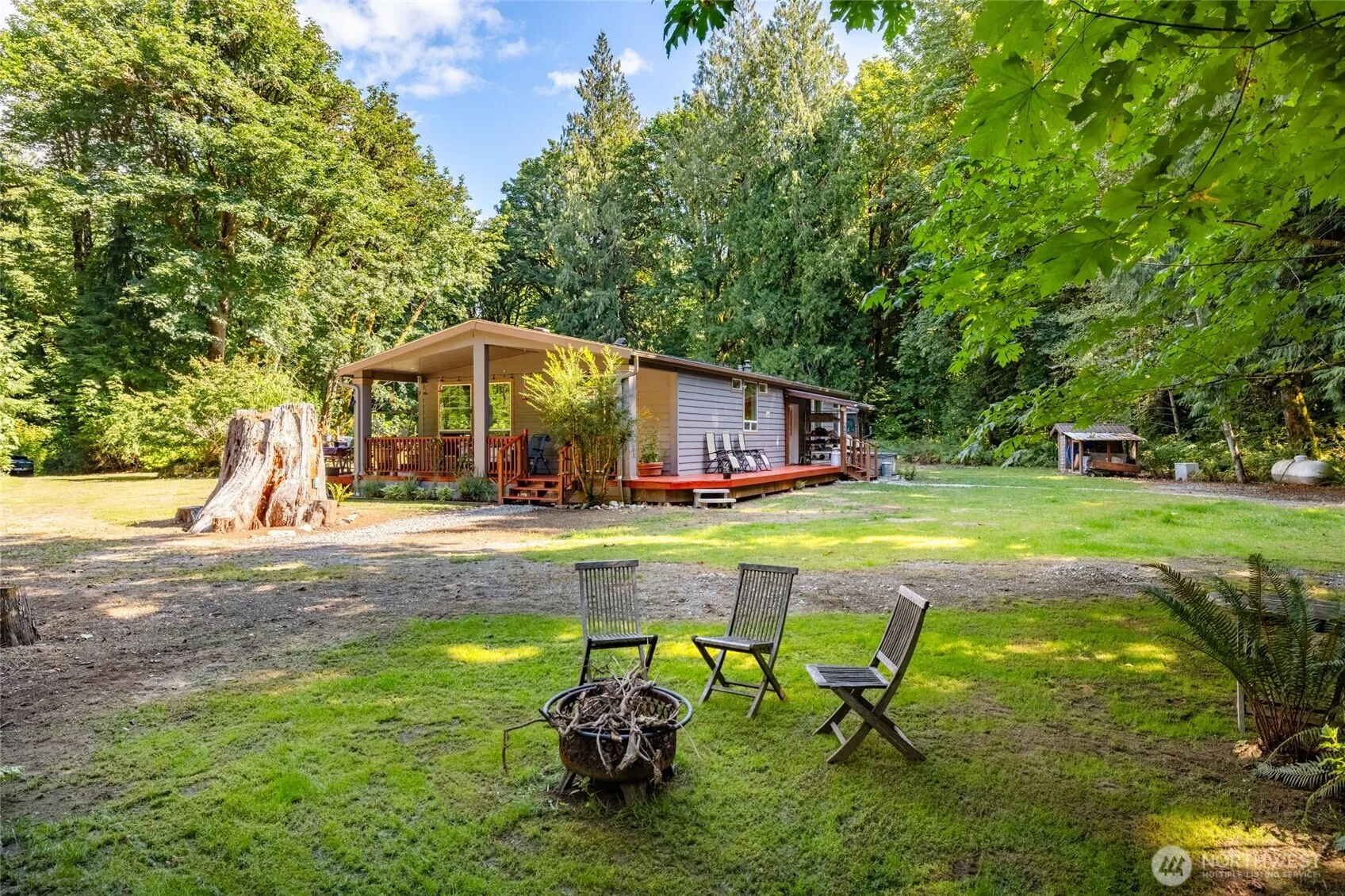 Your private retreat in the Marblegate gated community awaits! Nestled on over 5 acres of lush, private land, enjoy the perfect blend of peaceful country living with the security and exclusivity of a gated neighborhood. This well-maintained 2-bedroom, 2 full-bath home offers comfort, space, and serenity. Featuring a cozy fireplace, a spacious bonus room perfect for a home office or guest space, and an open-concept layout that invites natural light. Outdoors, the property includes a couple of outbuildings for storage or workshop use, full RV hookup, and a wired generator for the home. As part of the Marblegate community, you’ll also enjoy private access to the Skagit River with a community beach and trails.