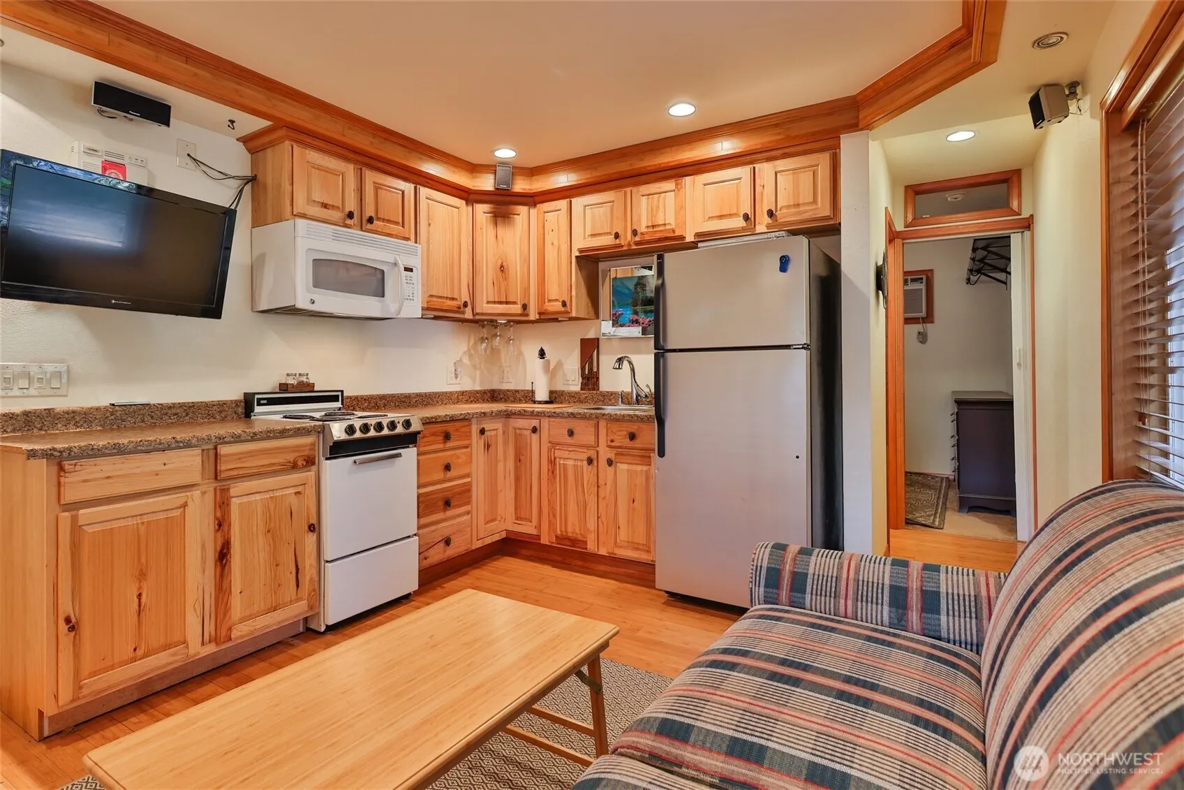 Escape to Ponderosa Estates, where mountain fun meets laid-back living! Tucked on a quiet side street, this affordable getaway features a charming 1-bed, 1-bath tiny home (300 sq ft) with a covered deck perfect for entertaining. Gather around the fire pit, and bring your RV or 5th wheel—there’s a 2-bedroom septic/dump already in place. The garage structure/air conditioned bunkroom is ready for your immediate use or creative vision. Enjoy community perks: a heated swimming pool, clubhouse, sports courts, playground, and Wenatchee River beachfront. With space to build your dream cabin, you can play now and plan for tomorrow!