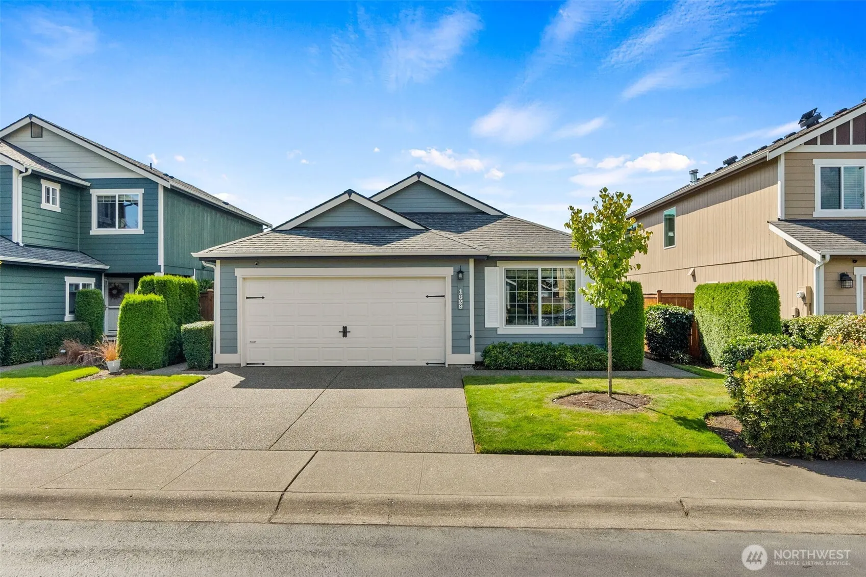 Immaculate Bridlewood rambler radiates curb appeal & pride of ownership! Vaulted ceilings & walls of windows offer natural light & seamless flow. Spacious great rm w/gas FP & built-ins opens to beautifully appointed kitchen w/custom cabinetry, LVP flooring & eating bar. Slider off the dining area leads to a private outdoor retreat- thoughtfully designed w/paver patio, landscaping & sprinkler sys to keep it pristine! Peaceful Primary Suite w/full bath, dual closets & slider to tranquil side-yard. 2nd BR w/front yd views & full bath. Bonus rm makes an ideal office/den. The Nest System: thermostat, smoke detectors & security cameras add comfort & peace of mind. A/C, Appliances & TVs stay AND the HOA maintains front yard! Just move in & RELAX!