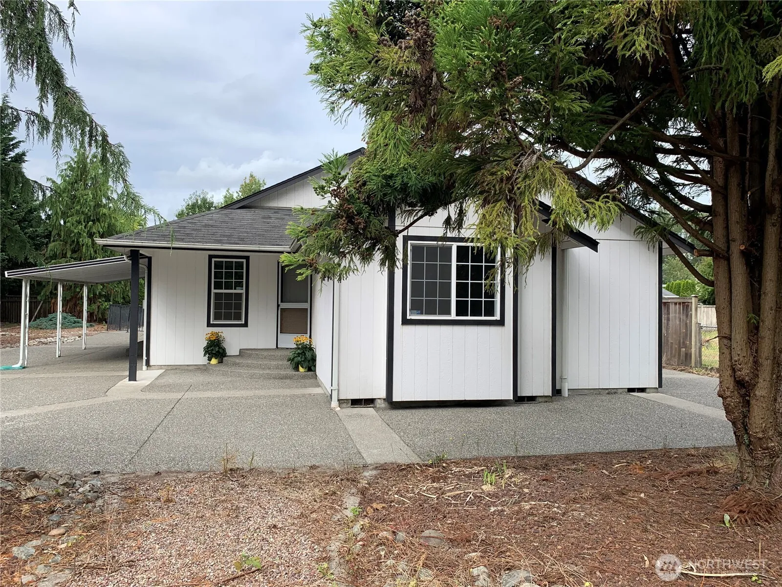 Gem of a house! 2 bedroom, 1-1/2 baths on fully fenced large lot with park like setting. Mature trees with landscaped walkways. Off private road with gated entry. Two car garage, plenty of parking. Sizable covered patio is perfect for entertaining. Cathedral ceilings with open concept. Large primary bedroom with en suite bathroom and jetted tub. Gas fireplace and gas stove. Sun porch with lots of light. Newer hot water tank, air conditioning. Wired for generator. All appliances stay.