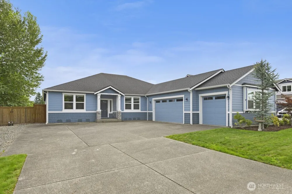Better than new, this 2019 single-level home offers thoughtful design & everyday ease. A bright, open floor plan is filled w/natural light from South-facing windows. The kitchen shines w/a large peninsula island & abundant storage, flowing into the great room w/surround sound. Four bedrooms include a flexible office/den w/double doors. The primary suite features a spa-like 5-piece bath & slider to a covered patio w/cozy gas fireplace. Outside, the flat, nearly two-thirds acre lot backs to wide open space. Perfect for a garden, play area, or backyard oasis. No HOA, + RV parking, a 3-car garage w/EV charger & a heat pump. All in historic downtown Sumner, just minutes to the Sounder train, HWY 167, schools, and a vibrant small-town atmosphere.