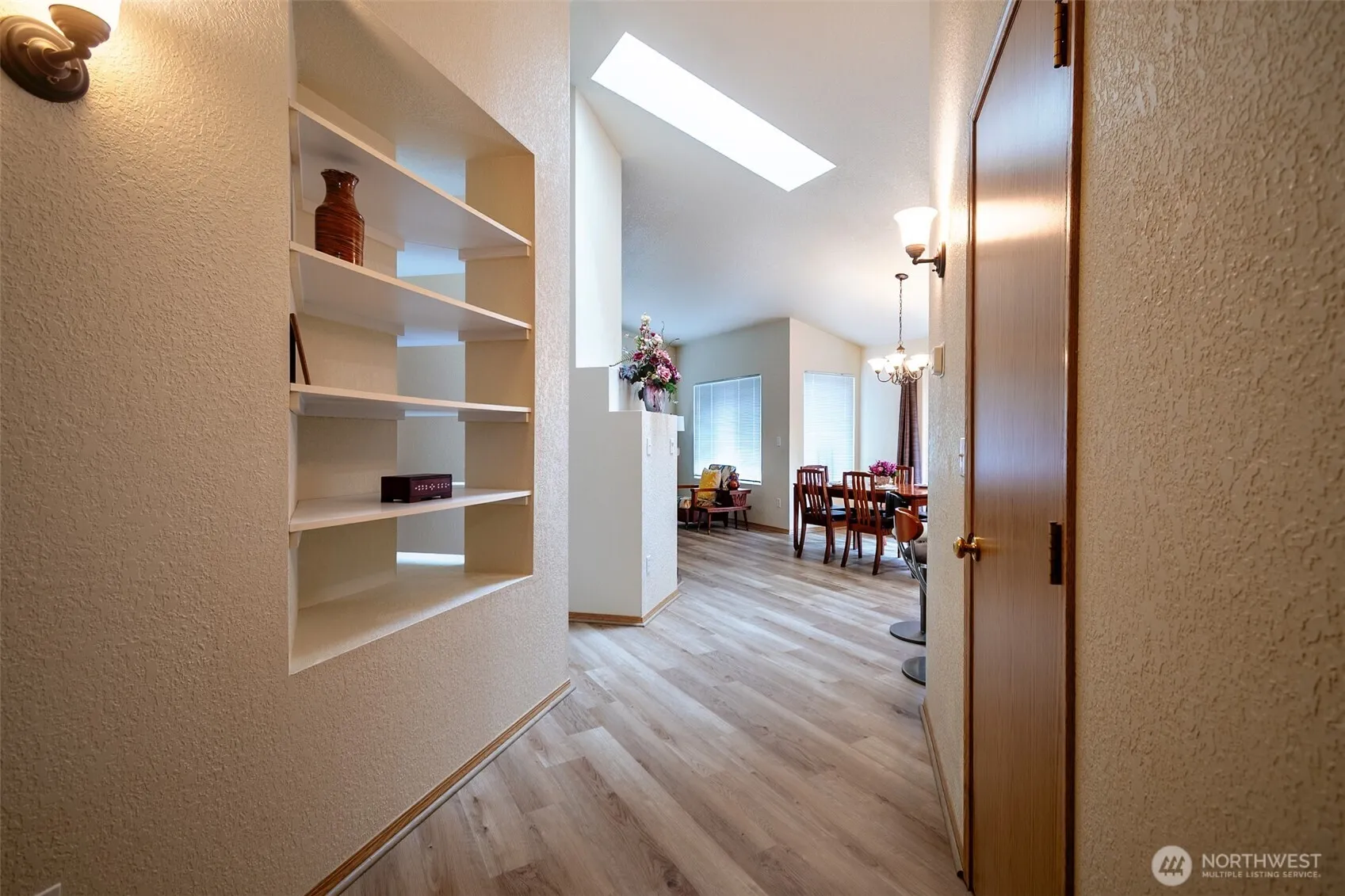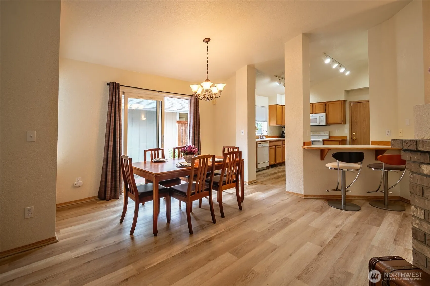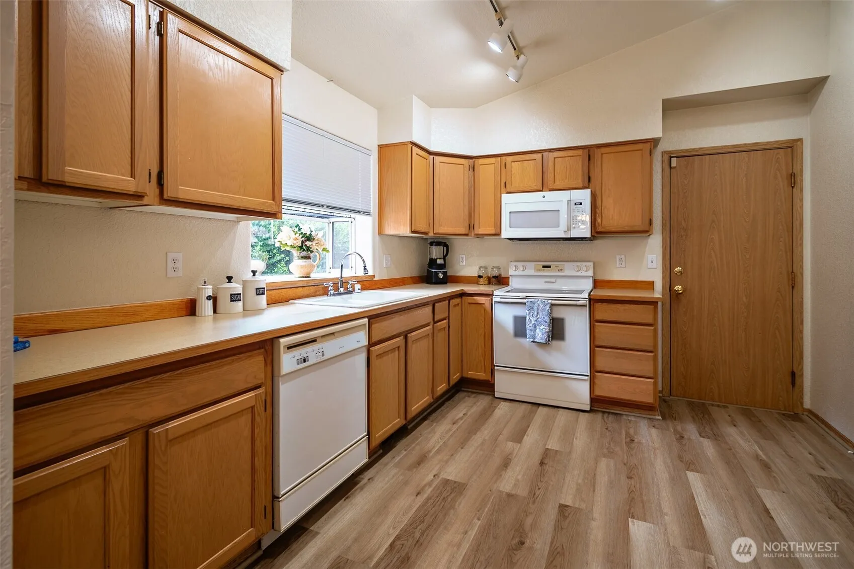 Welcome home to this inviting 2 bedroom, 1 3/4 bath retreat with a bright open floorplan. Vaulted ceilings and a skylight fill the living area with natural light, while the kitchens eating bar and dining area make for easy gatherings. The spacious primary bedroom includes its own en suite bath, offering a private oasis! Step outside to a spacious patio, perfect for summer barbecues, or quiet mornings. Updates include new carpet, luxury vinyl flooring, three new windows, a new garage door, and a new crawl space barrier – offering comfort and peace of mind. HOA dues include a park & front yard maintenance! Ideally situated near schools, shopping, & local amenities, w/ quick access to JBLM, this home combines convenience & easy living.