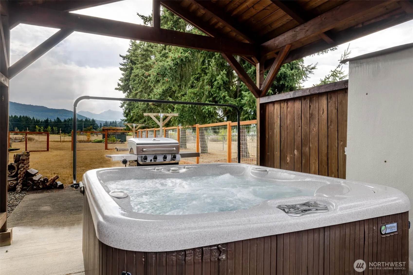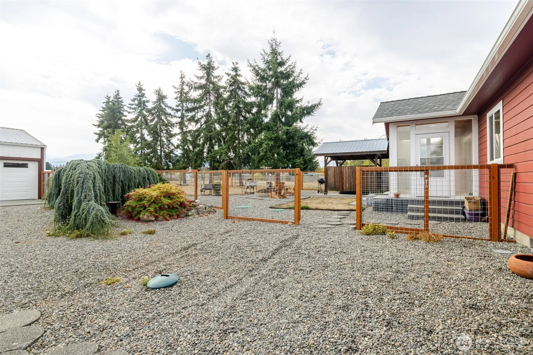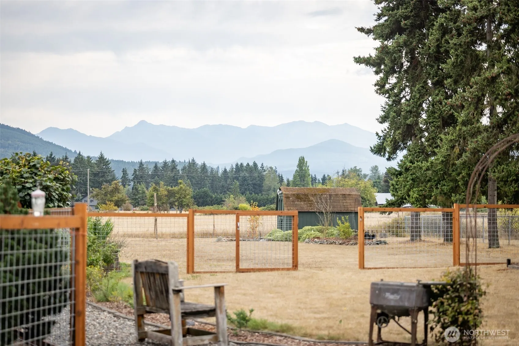 Spacious 2BR/2BA plus bonus room 2176 sq ft home in Sequim with stunning mountain views on 1.10 acres. The open-concept layout features high ceilings, hardwood floors, wood stove, sun porch, and a chef’s kitchen with granite counters, propane stove, island, pot filler, and stainless-steel appliances. Both bedrooms have walk-in closets; primary includes walk-in shower. Bonus room with separate heat pump adds flexibility. Outdoors enjoy apple, plum and cherry trees, flourishing raised garden beds, greenhouse, hot tub under gazebo, fire pit, and multiple storage sheds. Huge 1,440 SF garage with workshop, craft room & loft. RV parking w/hookups water filtration system complete this rare find near town. No HOA! Come see it today!