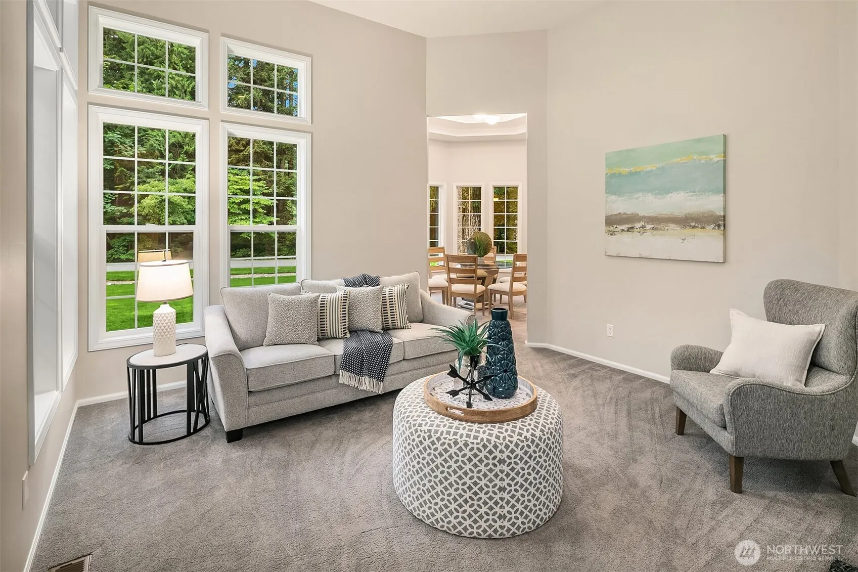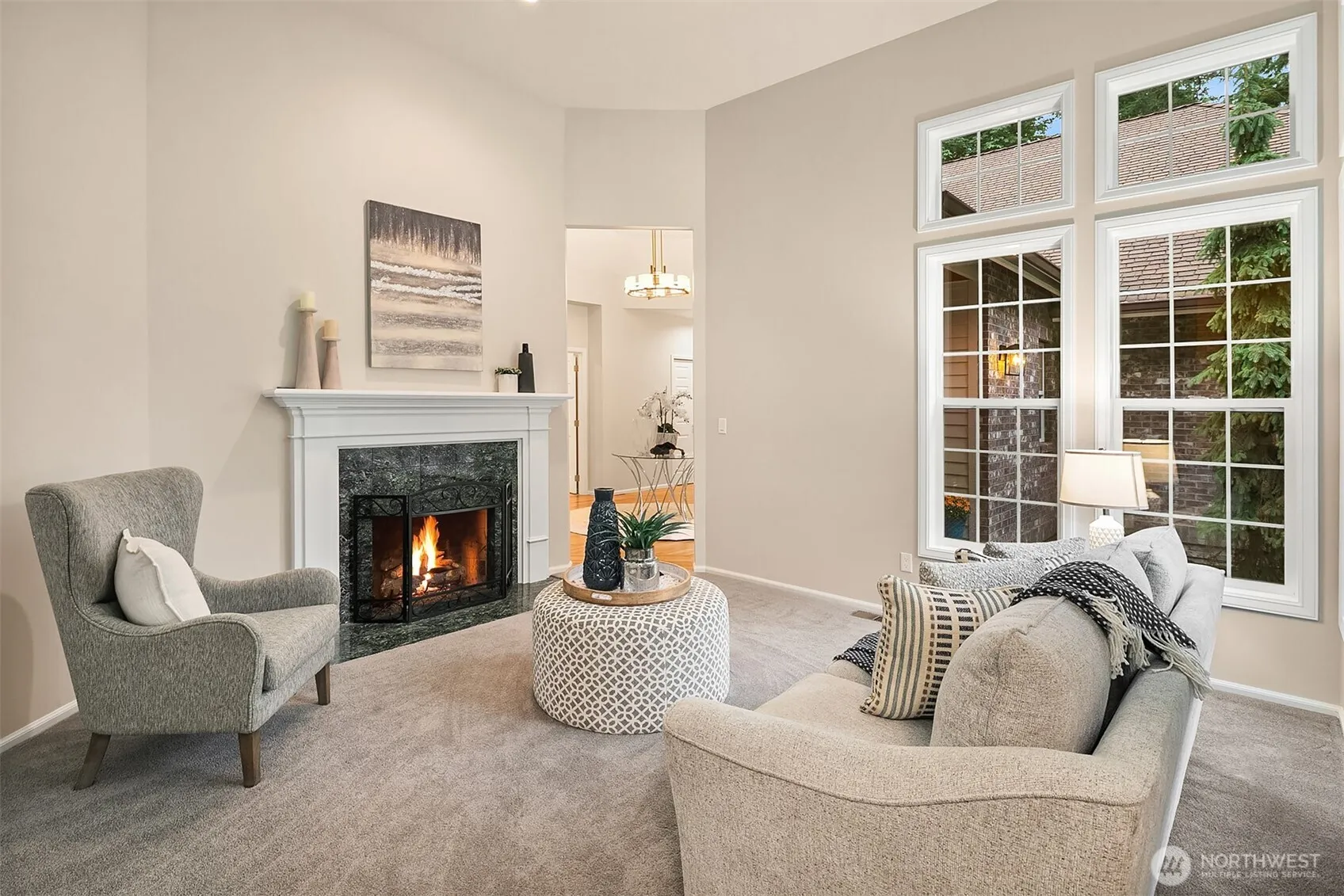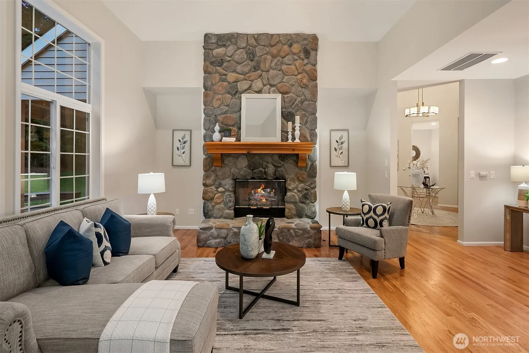 Rambler Retreat in Coveted Middle Fork Park. This beautifully updated 3 bed + office, 2.5 bath rambler sits on a private 0.75-acre lot in one of North Bend’s most desirable neighborhoods. Enjoy soaring 12+ ft ceilings, south-facing windows, hardwood floors & a light-filled open layout w/ refreshed kitchen & baths, 2 fireplaces, new paint in & out, & new Trex deck perfect for entertaining. The luxurious primary suite features heated tile floors, stand-alone tub, & huge closet. 3+ car garage (790sf), whole-house generator, & tons of storage. Mature landscaping ensures total privacy, w/ a fully fenced backyard & private river/beach access just steps away. Mins to I-90, town, trails, lakes, and more! PNW living at its best. Pre inspected.