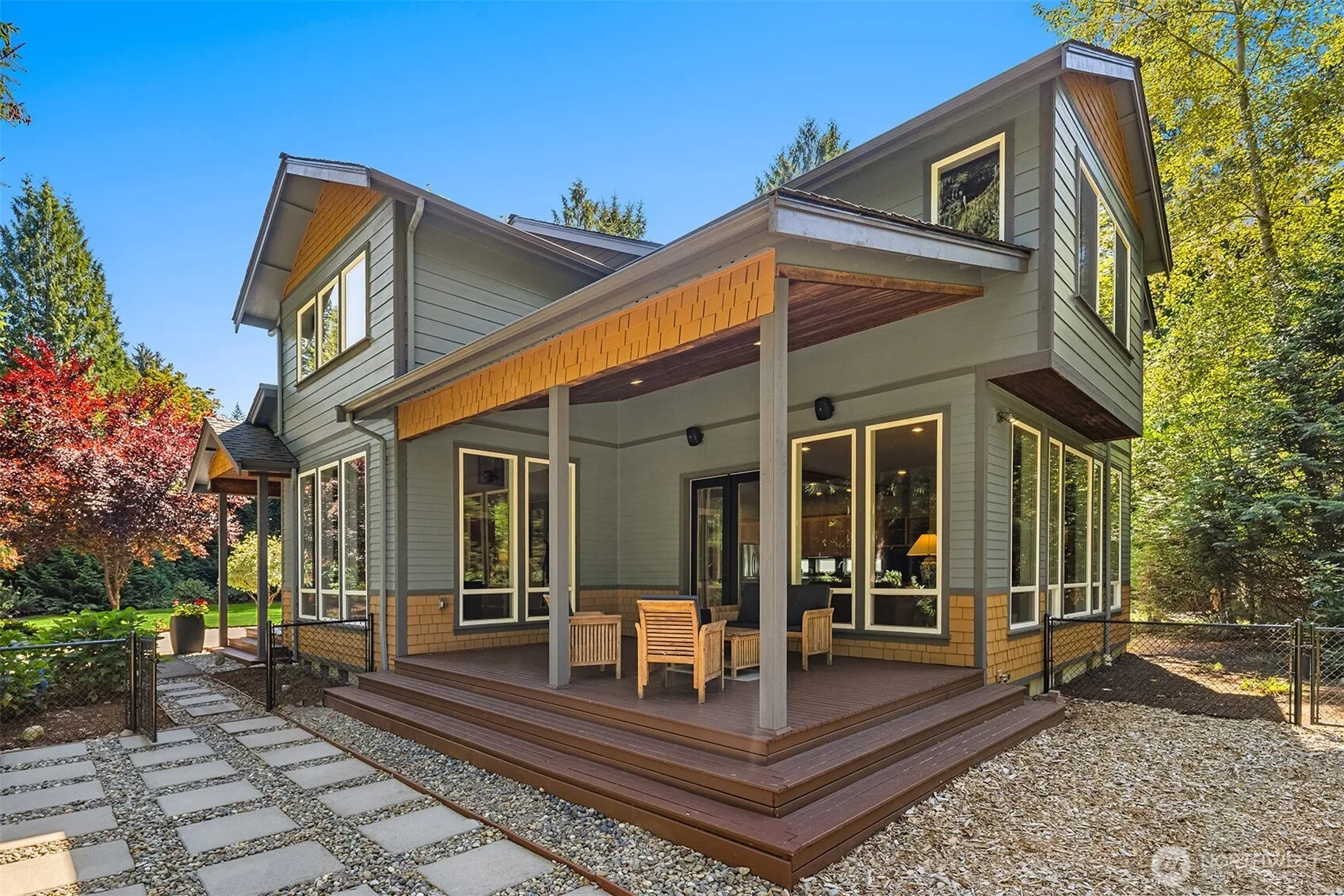 Custom NW home on nearly 3 acres with Raging River access! Located between Issaquah & North Bend, private custom built retreat is surrounded by trees and natural beauty. Open main floor features floor-to-ceiling windows, hardwood floors, and a spacious layout perfect for entertaining. Chef’s kitchen features stainless steel appliances and generous amounts of counter space. Bonus room on main floor is ideal for an office, workout space or another bedroom. Upstairs includes a large primary suite with oversized shower and walk-in closet, plus two bedrooms connected by a spacious Jack-and-Jill bath. Property includes 234 feet of riverfront footage. Easy access to I-90, hiking, and all the Snoqualmie Valley has to offer.
