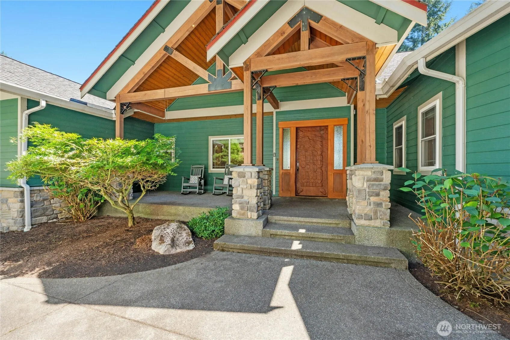 Gorgeous NW craftsman w/inviting beamed covered front porch & artisan-carved door. Privately nestled on 5 fenced, flat acres in The Country w/commanding front/center VIEWS of Rainier! Gated drive opens to established landscape for that dreamy country feel, yet only 10min to quaint DT Orting & Graham. Fantastic layout lives like a RAMBLER w/basement that delivers on Flex/ADU living w/plumbed kitchen, W/D hookup & more. HUGE bonus opens to yard. Thoughtful main level w/polished details: wall of vaulted glass showcasing Rainier & valley, pro kitchen w/gorgeous VG Fir cabinets, propane range, dual offices (5th bed & cocktail lounge?), mudroom, farm table dining. 2 covered BBQ patios. Hotel-inspired Owner Suite! NEW furnace/AC! Summer is calling