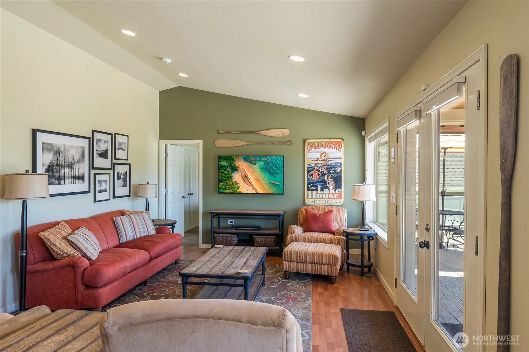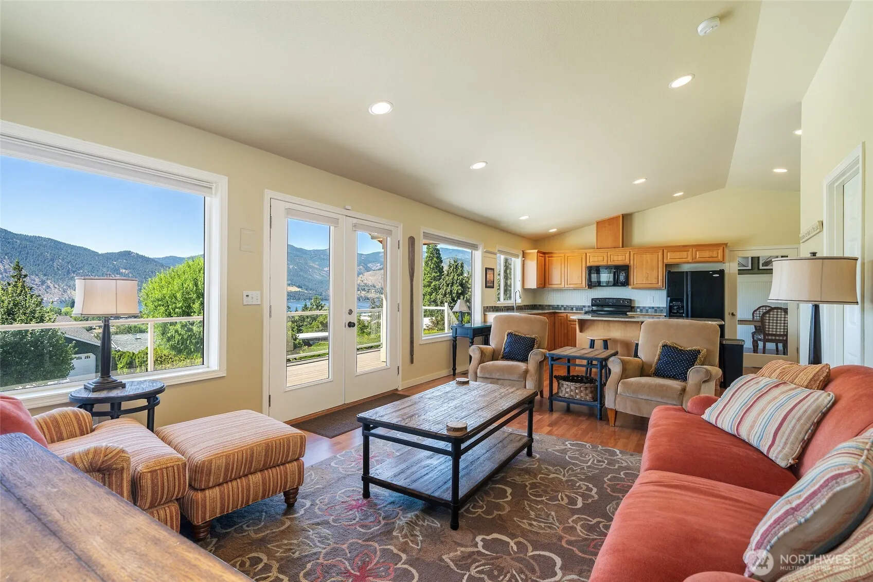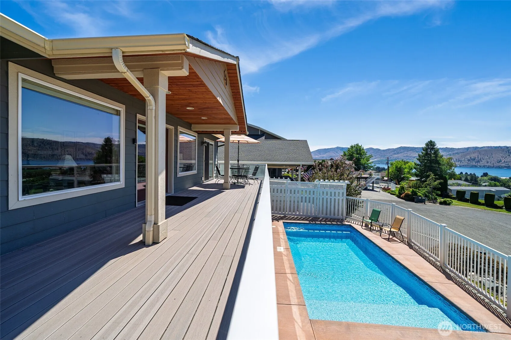 Turn-key Manson vacation retreat with lake views, pool, and 4 bed/3 bath layout. Open, efficient 1,849 sf design offers great indoor/outdoor entertaining—large deck, grassy yard, BBQ patio. Private west-wing rec room with kitchenette and 2 bed/1 bath – great for visiting friends. Walk to downtown in 10 minutes. Rented as STR in past, new pool liner & deck, all furnishings/housewares included. Two-car garage with storage. Quiet cul-de-sac setting—move in and start enjoying Lake Chelan life!