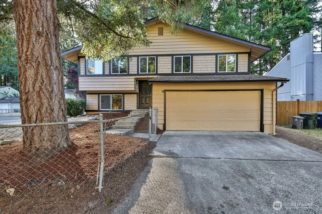 Beautifully remodeled home on a corner lot in a quiet cul-de-sac in Covington. The fully fenced yard offers endless potential for a garden or outdoor retreat. Inside, the open-concept living & dining areas flow seamlessly, w/ a slider to the back deck for perfect indoor/outdoor entertaining. The stunning kitchen boasts gray cabinetry, butcher block countertops, stainless steel appliances, a center island with eating bar, modern black hardware, deep sink & classic subway tile backsplash. Upstairs features the primary bedroom, 2 additional bedrooms & a full bath with a stylish tile shower/tub combo. The lower level offers a spacious rec room with slider to the backyard, a large utility room, another full bath & a 4th bedroom.