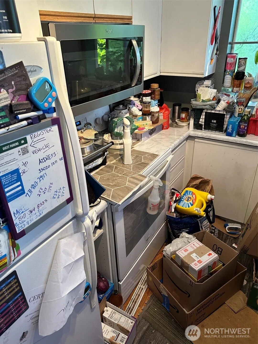 Investor Special! Top-floor 2BR/2BA condo in sought-after Latitude. Open kitchen with ample storage, dining area, and spacious living room with fireplace. Private covered deck with territorial views. Primary suite with en-suite bath. Includes garage plus resort-style amenities — clubhouse, pool, hot tub, and fitness center. Prime location near shopping, dining, and transit.