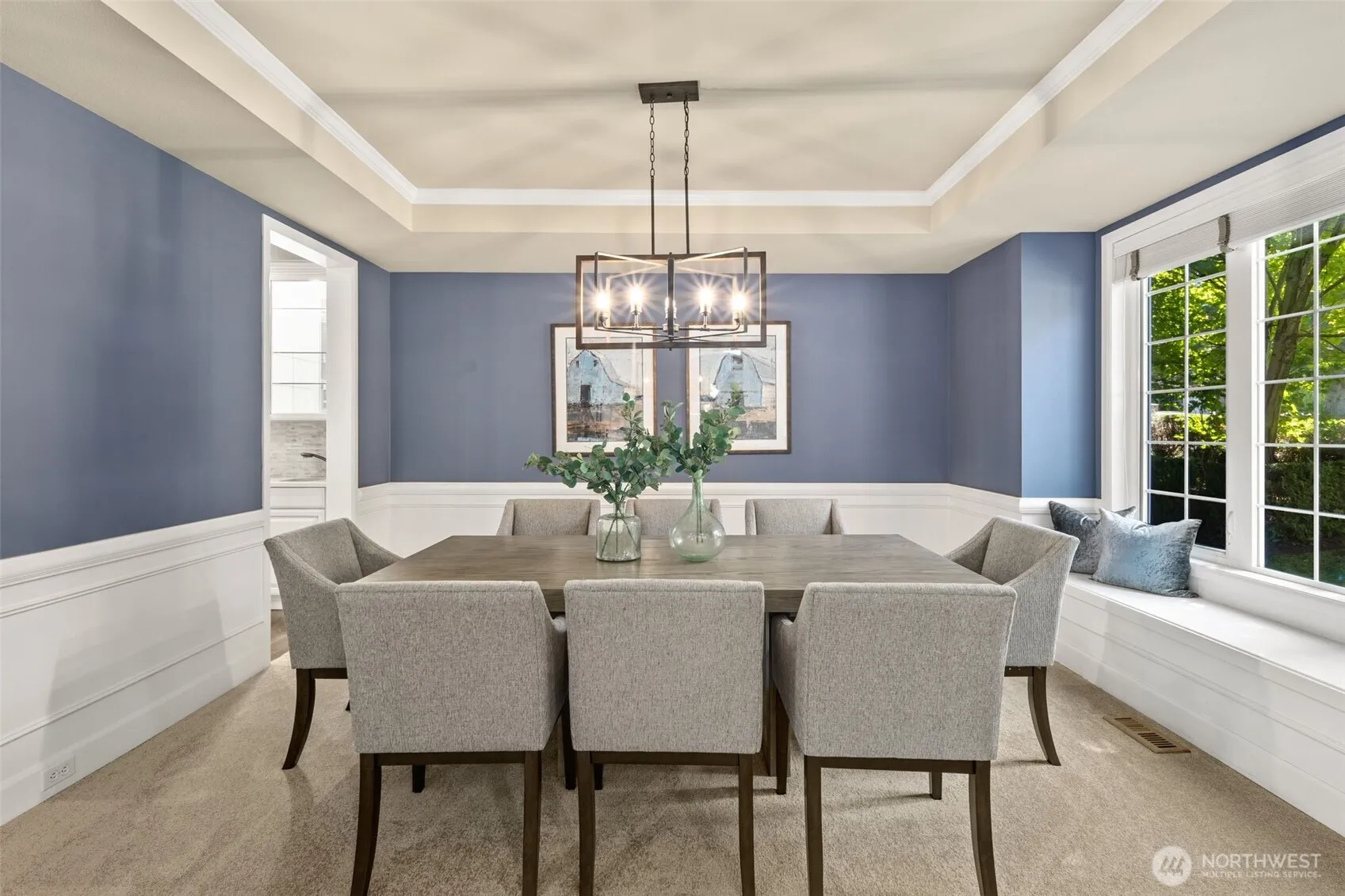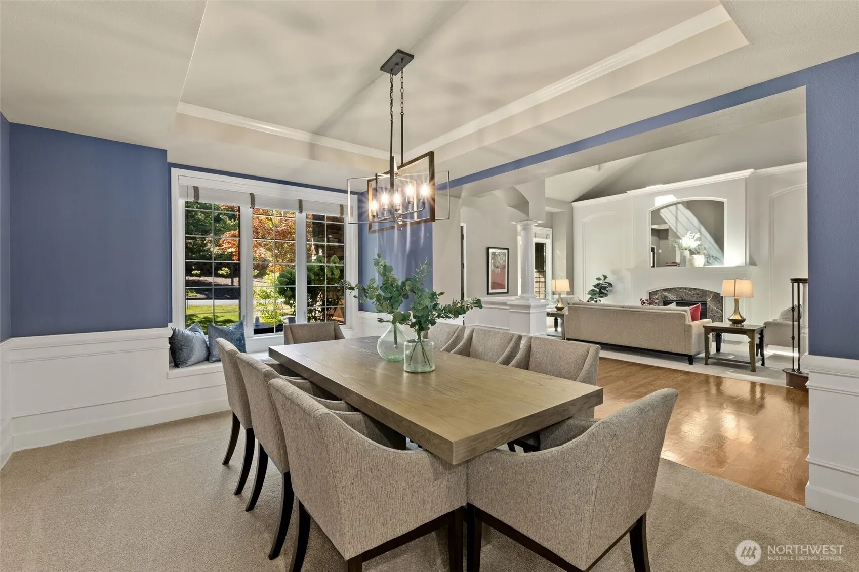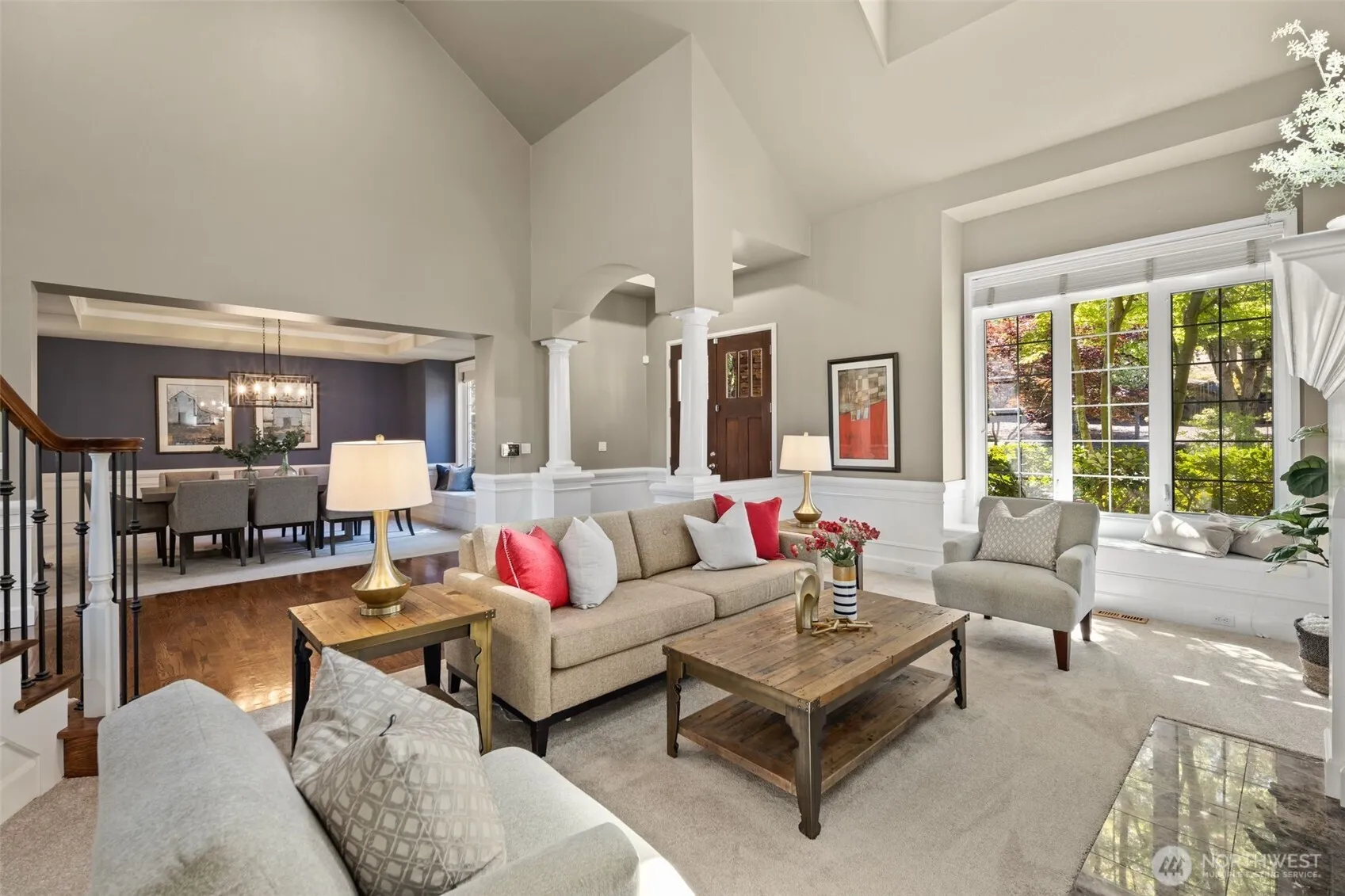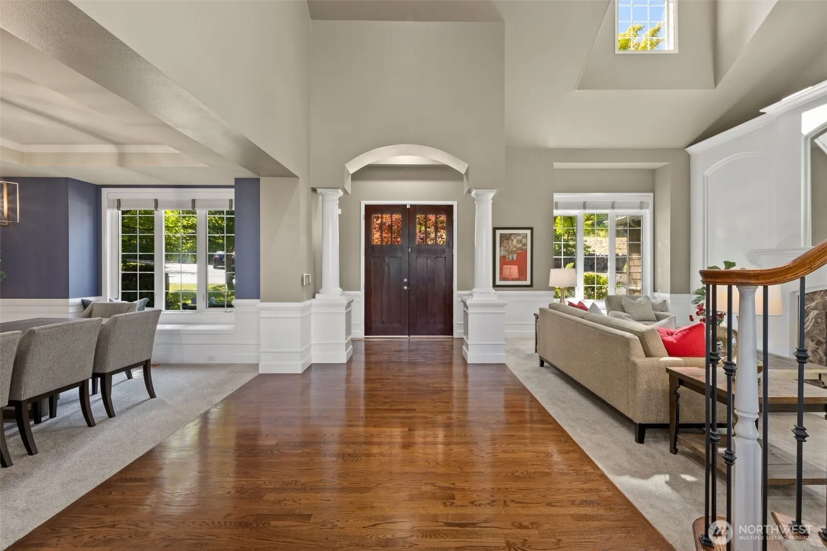 Experience refined living in sought-after Aldarra Estates. From the grand two-story foyer with gleaming hardwoods to the striking open-air bridge, this 4-bedroom home exudes elegance. The main-level primary suite offers a tray ceiling, private patio access, and spa-inspired ensuite. The bridge overlooks light-filled living areas, creating a seamless sense of connection. The kitchen boasts brand-new LG stainless steel appliances, granite counters, and abundant cabinetry. A remodeled laundry/mudroom adds convenience. 3-car garage offers ample space, while dual A/C units keep every level comfortable. Backing to a protected greenbelt with Cascade views, this home blends timeless style with modern functionality—an exceptional find in Sammamish.