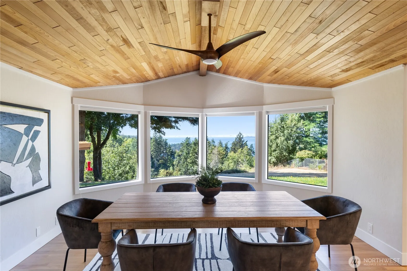 Very nice view home on shy acre with views to the west of Rosario Strait, Sound, & Olympic Mountains. The lot is beautiful with mature fir trees and Madrona’s on the water side. In 2020 the owner completed an extensive remodel including new hardwood flooring throughout, tile floors in both baths and laundry room, stone countertops in the kitchen, new vanities in both bathrooms with stone countertops, some new lighting, all baseboards, trim and Interior doors were replaced, home was completely repainted interior and exterior, new window coverings, new aggregate patio and new roof. A very nice office/den too! House sits away from road down private winding driveway. This home is move in ready!