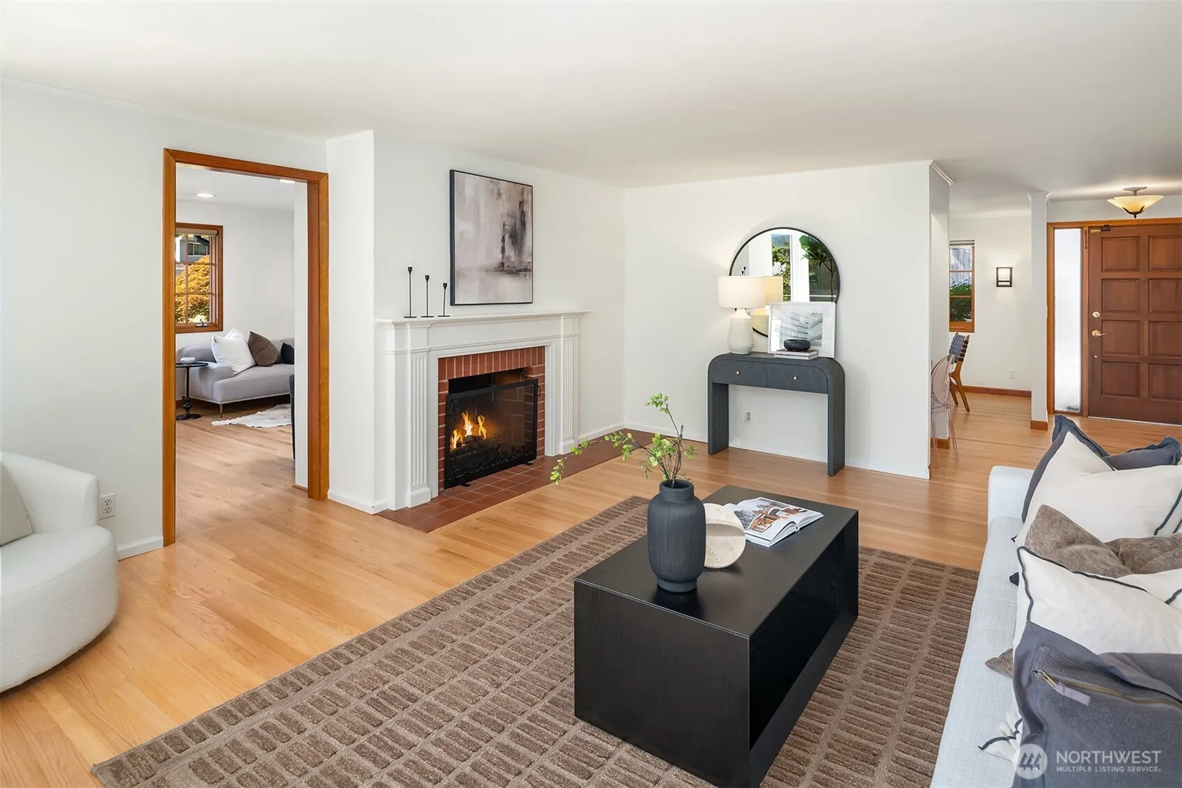 Tucked at the end of a quiet lane in coveted Sheridan Heights, this 4bed, 2ba home offers comfort, privacy, and space to live and grow. The fully fenced & landscaped 8,250 sq ft lot offers room to play and peekaboo views of Lk Washington. The kitchen opens to a cozy great room w/ fireplace and an entertainment-sized deck—perfect for gatherings or quiet mornings. The bright, welcoming living room and adjacent dining area add flexibility for everyday living. Three bedrooms on the main level, including a spacious primary with direct bath access. The lower level adds a rec room, fireplace, full bath, 4th bedroom, bonus room for work or hobbies, & large utility area. A/C, 2-car garage, & option for associate Sheridan Beach Club access included.