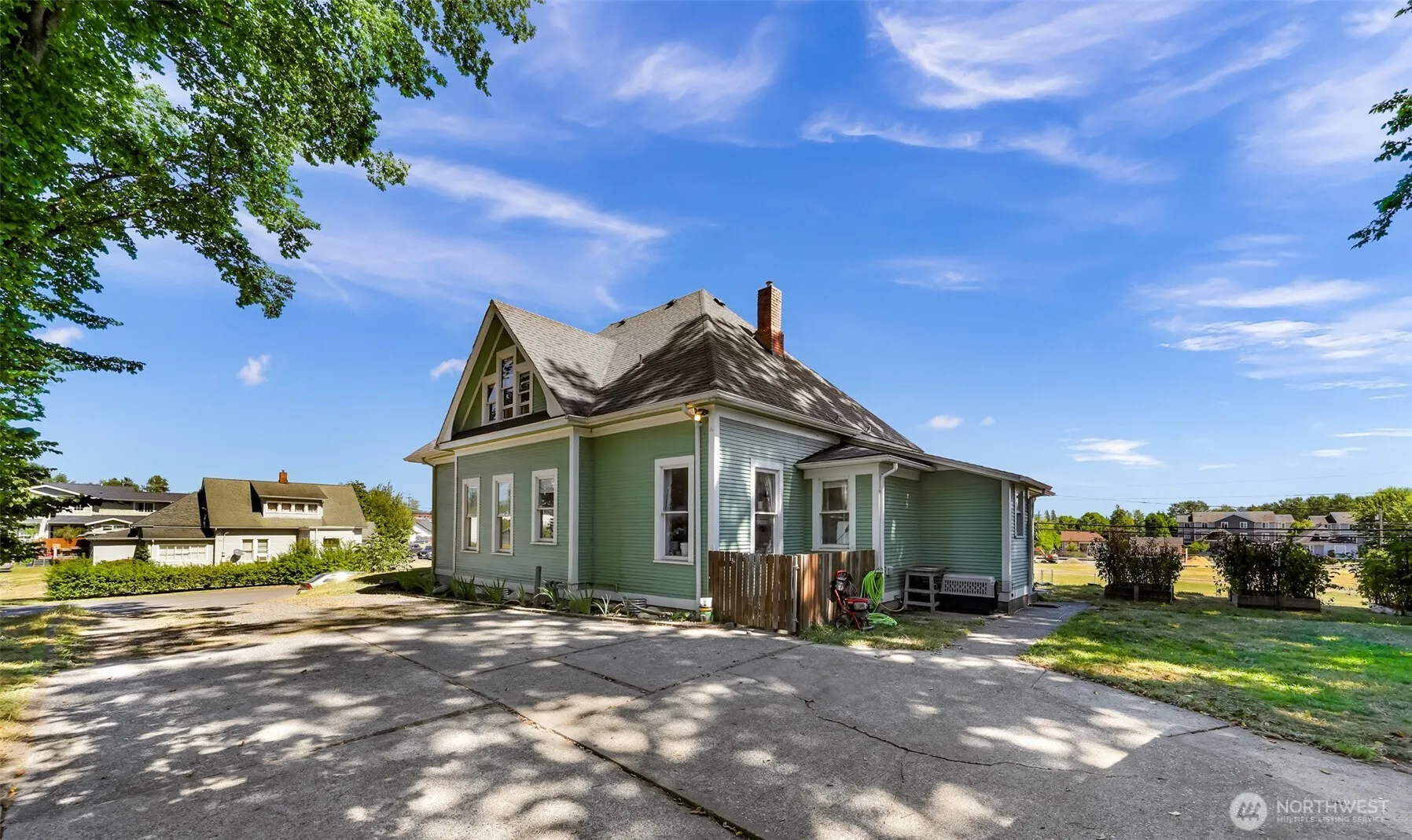 Charming turn-of-the-century 4 bed/2 bath farmhouse sits high upon a spacious .4-acre lot in the heart of Ferndale. Just steps from Pioneer Park, the scenic Riverwalk & downtown amenities. This historic gem features a newer roof, updated systems & abundant character. Reveal the carpets for original hardwood floors throughout. Tall ceilings & vintage woodwork add grace. Large walk-in closets, butler’s pantry & primary bedroom ensuite. Enjoy outdoor living under the covered deck or by the fire pit & picnic area. Large garden shed, huge garden plot, mature fruit trees/shrubs. Unbeatable walkability to shops, eateries, brew pubs, Boys & Girls Club, and schools. Includes detached garage—cosmetic updates will make this home truly shine!