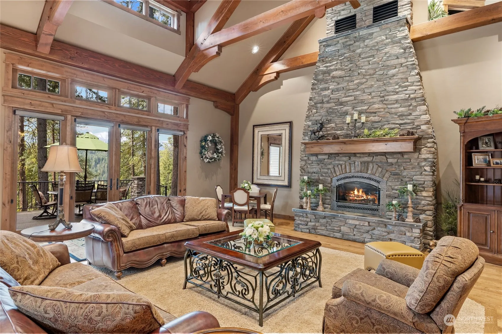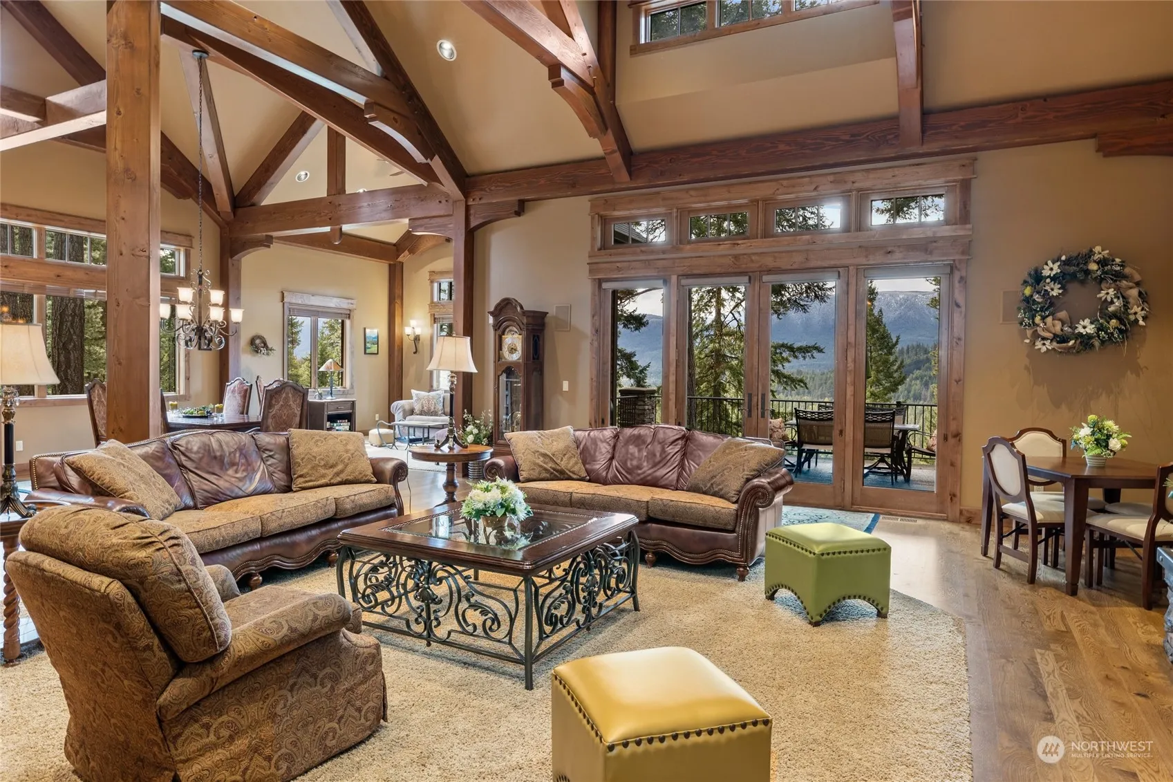 Perched High above the Cle Elum River 1200 acre Conservancy, this Stunning, NW, Rustic-Chic, Timber-Frame home touts Impressive, Vaulted Ceilings throughout the Great Room. Beautifully Crafted open floorplan feat/ high-end kitchen appliances like a SubZero refrigerator, Wolf 6-burner stove and Dacor Double-Oven w/warming tray and 2 full-size Dishwashers. Kitchen feat. Rare Butlers Pantry and a Cozy little lounging nook off the Dining room. Home has 5 Bedrooms (one being a Huge Bunkroom) & 4 Baths. Primary Ensuite Bedroom is on the main floor. Central Vacuum throughout. Enjoy your morning coffee on the back porch while you take in the morning sun. This is Northwest Living at its Finest. Home Comes mostly Furnished. New Roof (Cobra) 2022.