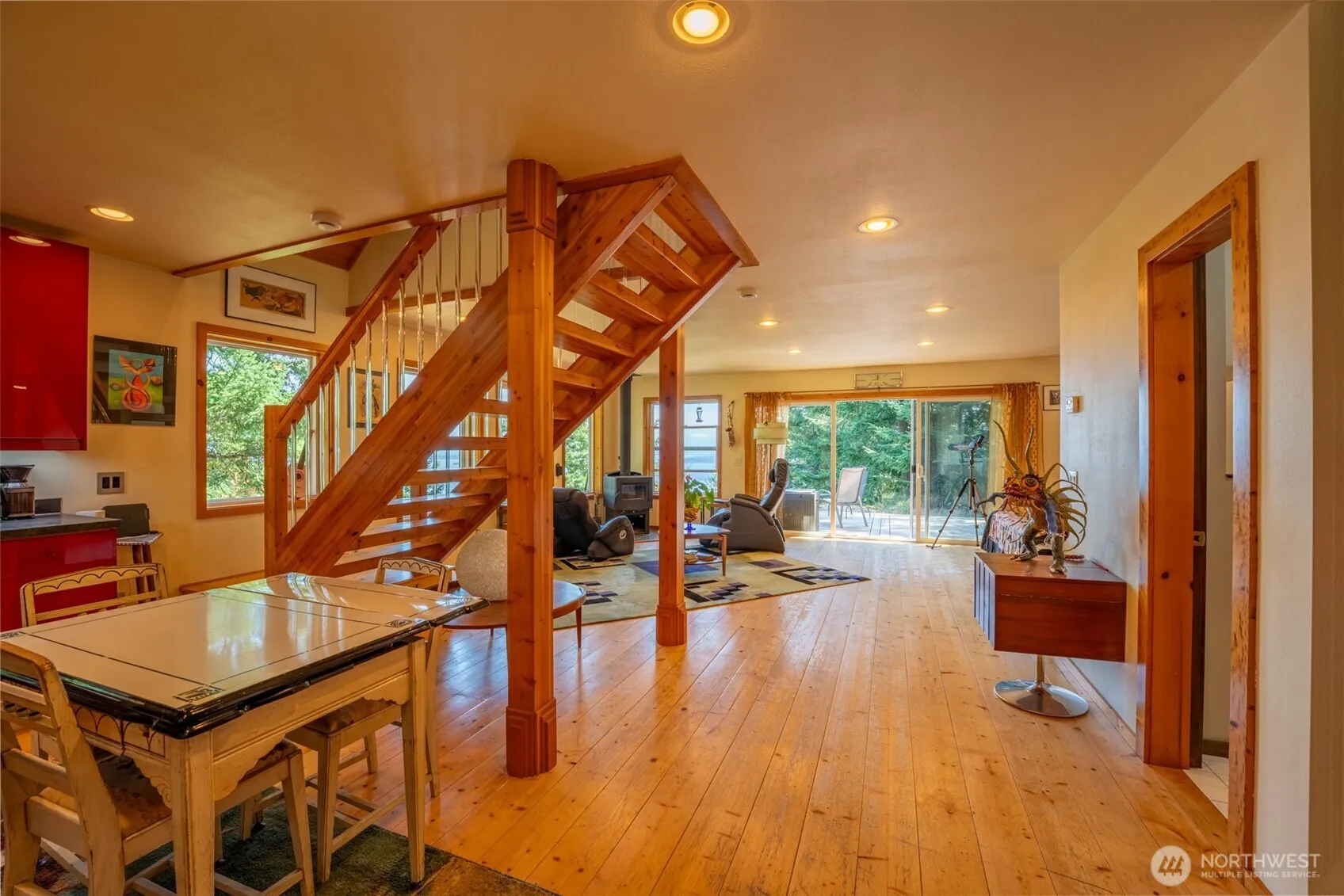Escape to over 5 acres of private forest with unmatched views of Mount Baker, the outer islands and the Salish Sea. This custom 3 bed / 2 bath home with a vacation rental permit is filled with character – handcrafted woodwork, a bold chef’s kitchen, and a spa-style bath with jetted tub, heated shower seat and skylights. Enjoy an open layout, wood floors, and a cozy wood stove. Home has radiant floor heating throughout. Step outside to an expansive view deck framed by evergreens and the quiet serenity of a large seasonal pond. Located minutes from Eastsound, Moran State Park, and ferry access, this tranquil retreat offers room to expand, a garage with heated a workshop/flex space, plenty of storage and unbeatable island charm.