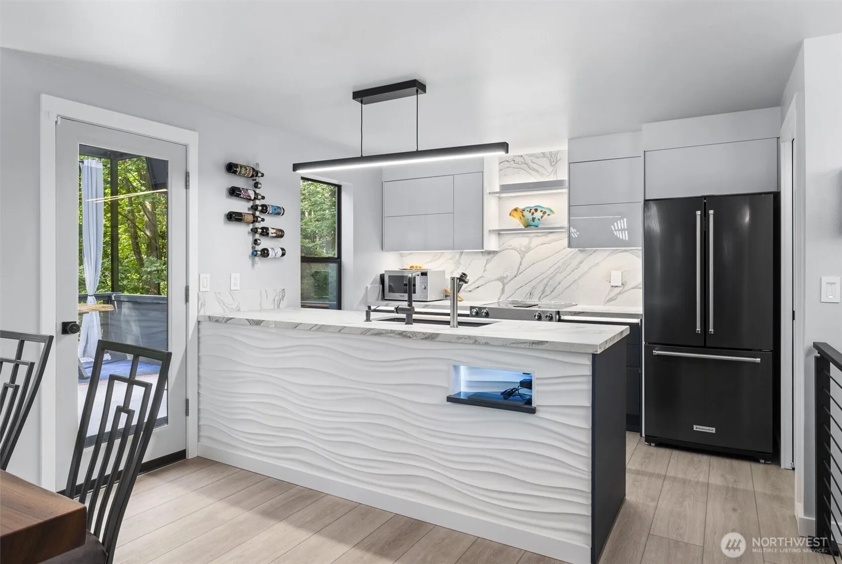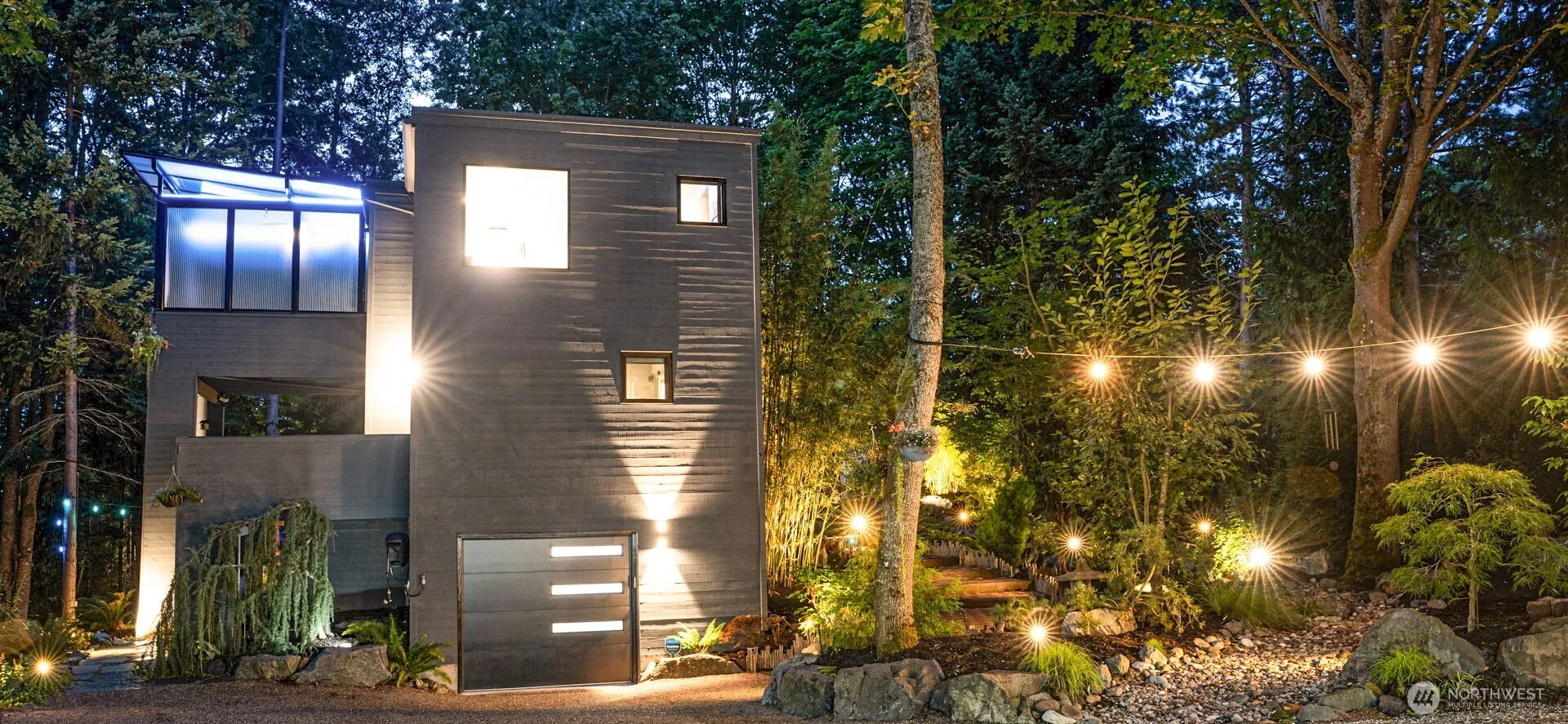 Discover unparalleled luxury in this one-of-a-kind home, where sophisticated interiors meet serene outdoor living. A dramatic entry with motion-lit stairs leads to a designer kitchen with custom FORM cabinetry and premium countertops. Smart home technology, customizable LED lighting, radiant heated floors, and refined finishes elevate every space. The expansive covered deck with infrared heat overlooks a peaceful ravine. The yard features a spacious outdoor studio, tiki bar, fire pit, garden sheds, and beautiful landscaping. Multiple outdoor living areas create a private, resort-like oasis. No HOA fees, walking distance to the beach, and minutes from the Sounder, waterfront, Boeing, and Paine Field.