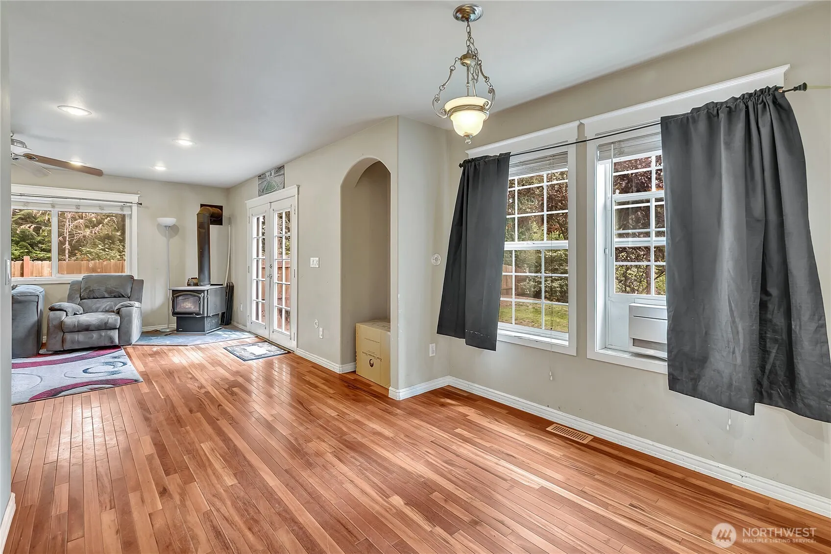Large home on corner lot! Enter from front porch to entry with cherry floors and inlaid designs. Kitchen with marble backsplash, SS appliances and breakfast bar. Livingroom has wood burning stove for cozy winter nights. TWO BONUS ROOMS in this house! Large office on main floor, perfect for working at home! Spacious primary bedroom with with private bathroom. Common bathroom to accomedate the other 3 rooms upstairs. Extra deep garage ready for all of your toys and upcoming projects. Fully-fenced back yard w/patio, shed. Enjoy trails, the community pool & boat launch!