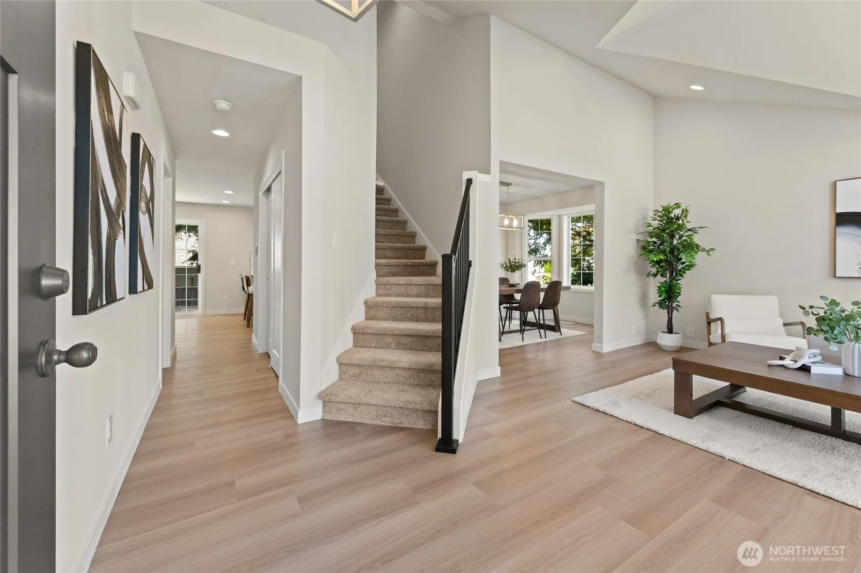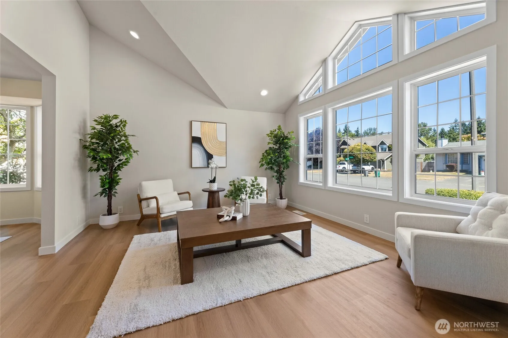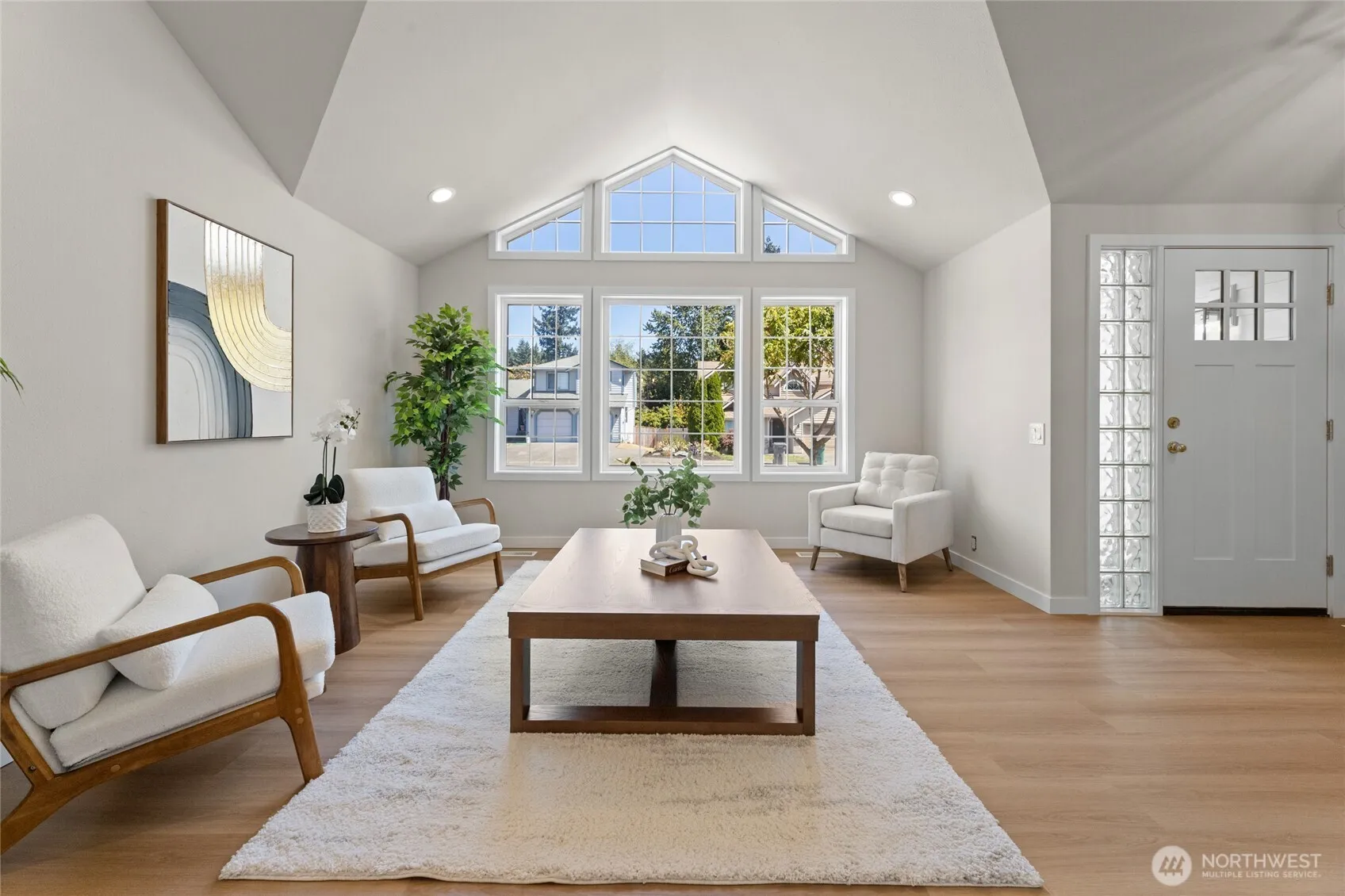 All new & updated 4 bedrm 2 1/2 bath corner lot home w/RV parking.Great location to commuting & amenities. So much natural light in this home w/skylights & amazing designer touches. Cooks kitchen w/all new white cabinetry, quartz counter, SS appliances, hood vent, walk in pantry & more. Fresh new inter/ext paint, lighting, vinyl plank flooring, carpet, moulding, doors throughout, hardware & more.Tranquility awaits in your primary bathrm w/free standing tub, dual sinks, quartz counters, tiled shower & tile floors.All bathrms have quartz & white cabinetry.Don’t miss the acoustic accent wall that highlights gas fireplace.50 year roof about 10 yrs old.All new garage doors, openers & water heater. Buyer walked due to home not set up for daycare.