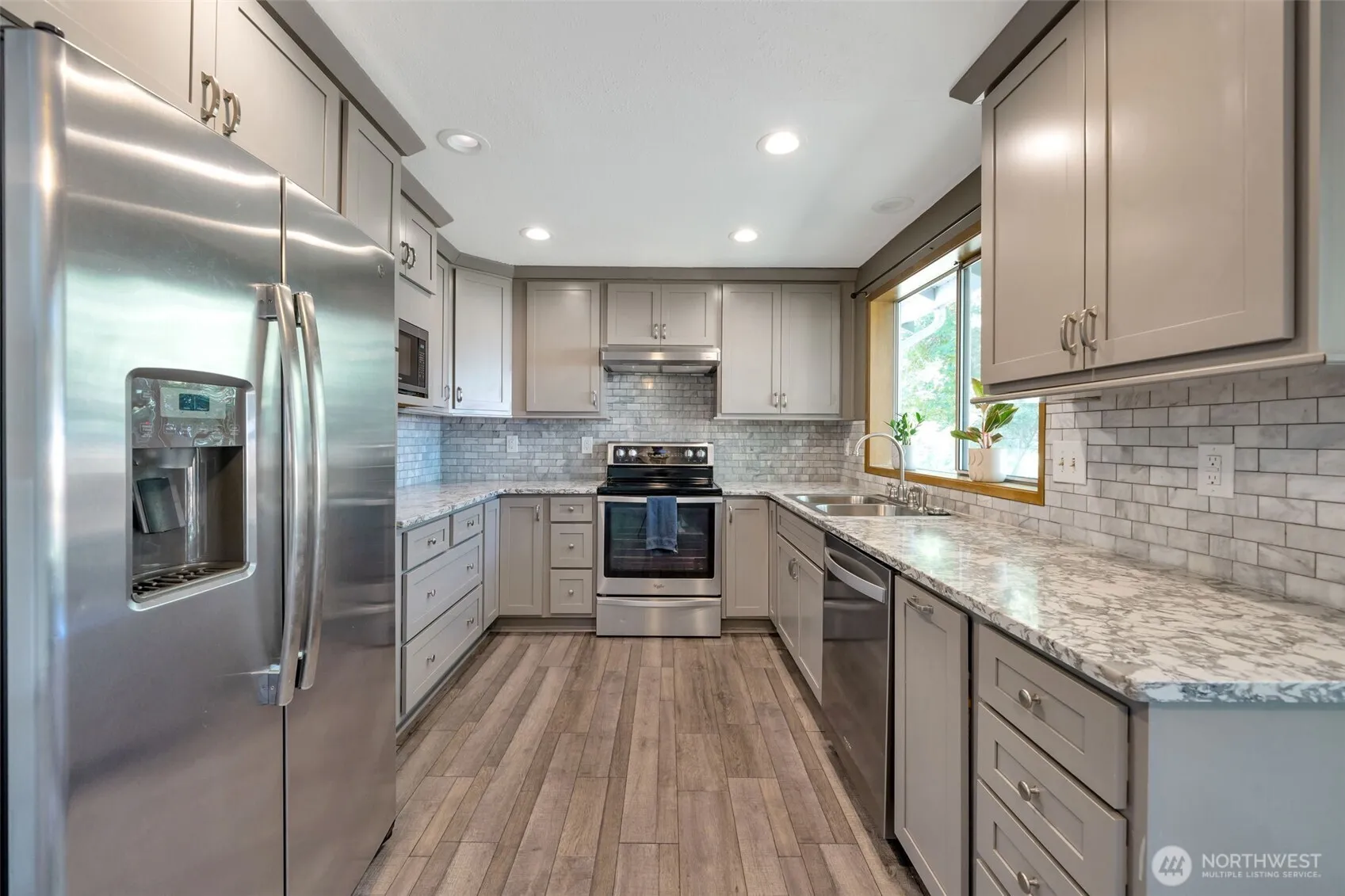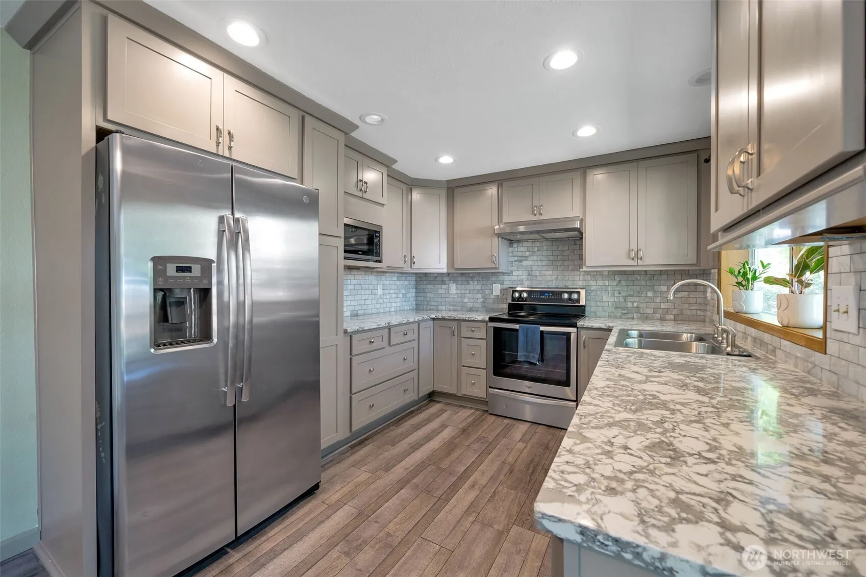Discover this 1,440 SF, 3-bedroom, 2.5-bath stunner tucked away on a peaceful Pinnacle Estates cul-de-sac! Step inside to stylish laminate hardwood floors & an upgraded kitchen with quartz countertops, eye-catching tiled backsplash, & sleek soft-close cabinets. The light-filled layout flows effortlessly from the living room to the dining area, to the family room, perfect for entertaining. Relax in year-round comfort with central A/C. The grounds included mature landscaping, private patio, & fenced backyard. Close to charming downtown Enumclaw, Crystal Mt., Mud Mt. Dam & other scenic hiking trails, parks, schools, shopping, and dining—this move-in ready home offers the perfect blend of modern updates, comfort, & a prime location with no HOA!