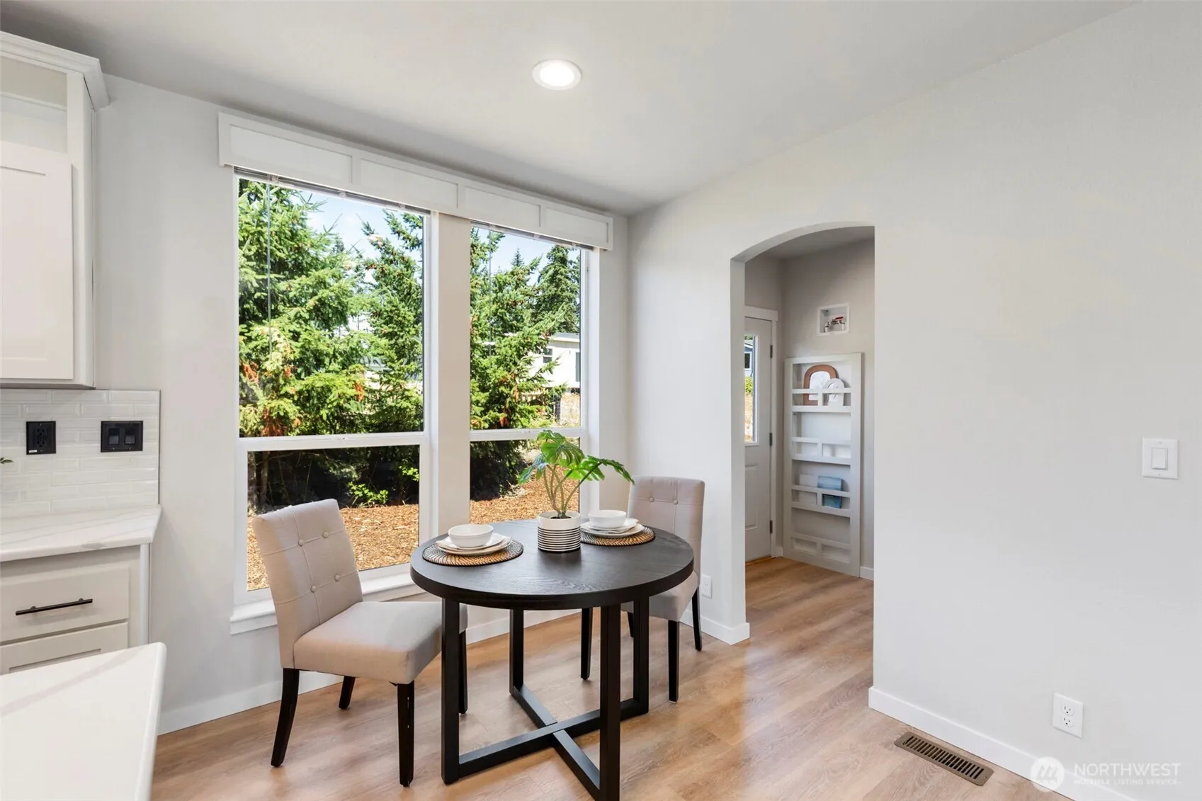 This brand-new home offers a bright, open floor plan with rich plank flooring and extra-tall windows that flood the space with natural light. The inviting eat-in kitchen features quartz countertops, a farmhouse under-mount sink, and stainless steel appliances—perfect for cooking and gathering. Enjoy the expansive covered front porch, ideal for morning coffee or evening sunsets. Grocery store, post office, hardware store, and more all within walking distance or a minute’s drive. Builder and manufacturer warranty included for added peace of mind!