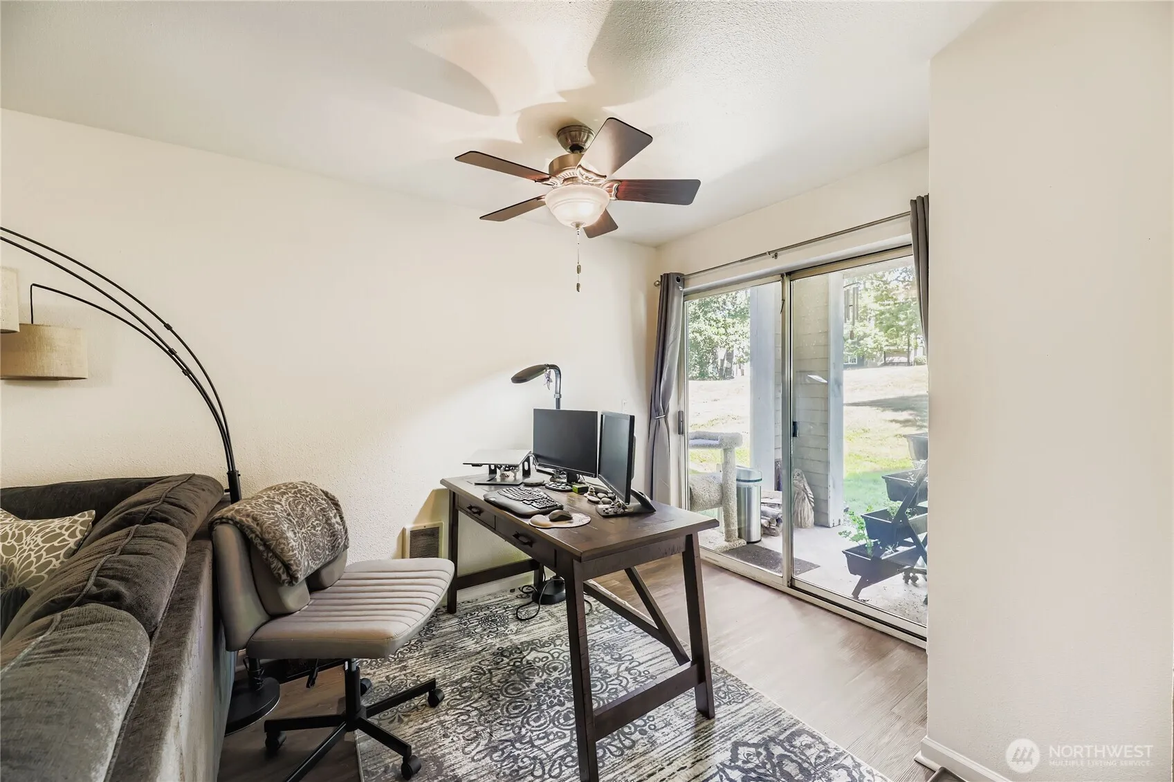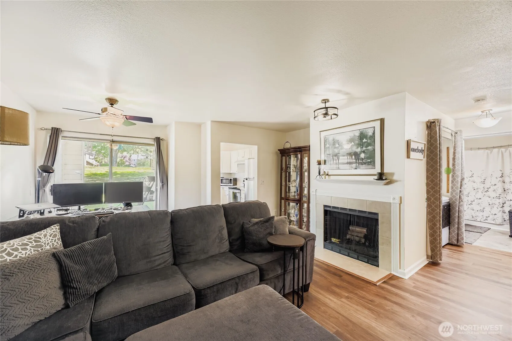 Just remodeled- Meticulously maintained ground-floor unit with covered patio that opens to an expansive yard with abundance of natural light. This spacious unit features new laminate flooring, designer lighting & is freshly painted. The kitchen features S.S. appliances with new refrigerator, new cabinets, and new quartz countertops. Bath has been updated w/newer tub & shower enclosure & tile flooring. Full-size newer W/D, newer hot water tank. Cozy wood-burning frplc with new mantel. 2 parking spaces- 1 covered & 1 open. Easy access to Boeing, and restaurants. Home comes with 2 parking passes for Mukilteo Beach by the ferry terminal. No rental cap, HOA includes W/S/G