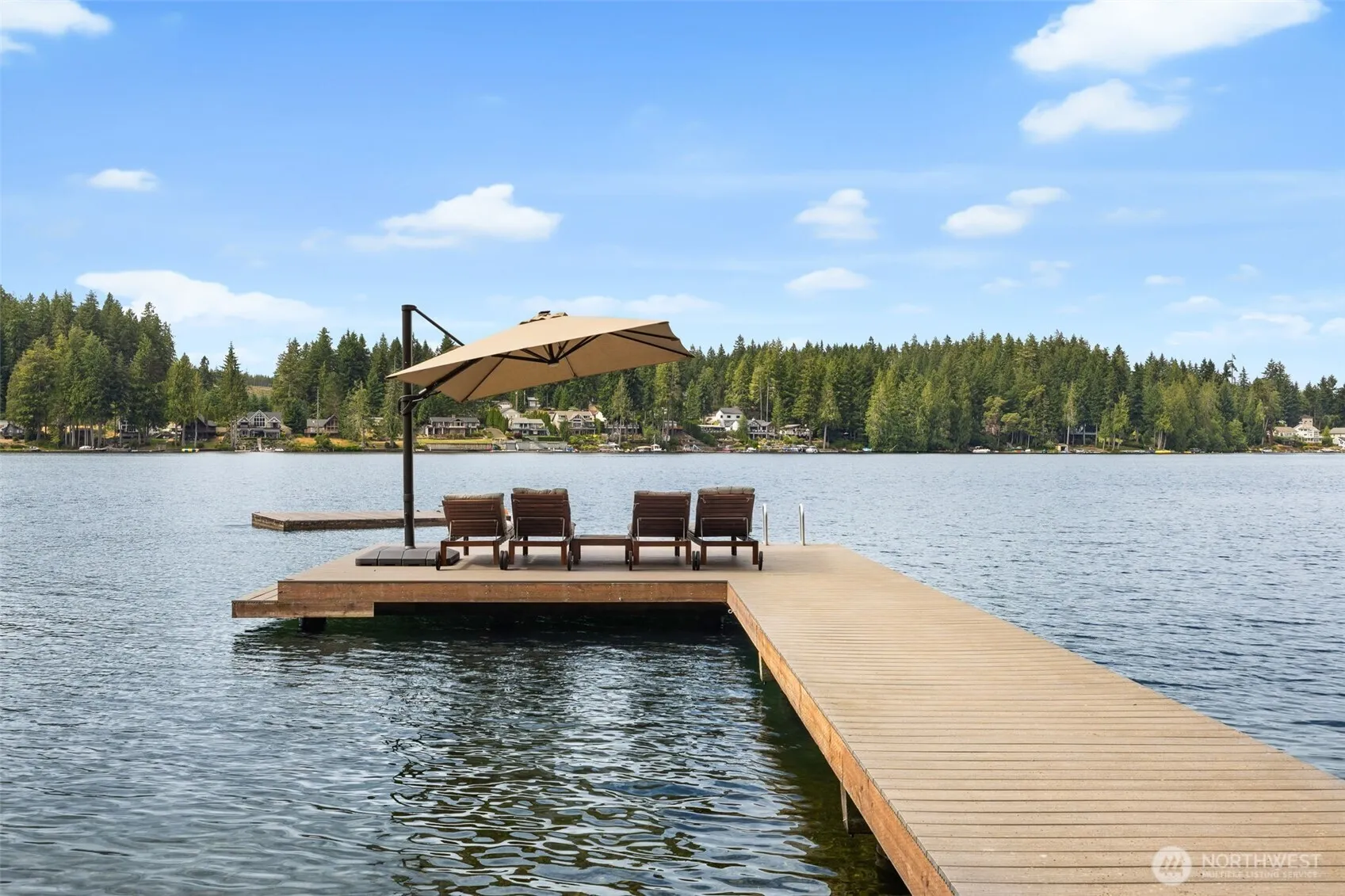 Surrounded by trees on the highly coveted shores of Mason Lake, discover a private, West-facing, no-bank waterfront property with two separate residences! The turn-key primary home features 2 bedrooms, 2 baths, vaulted ceilings, custom woodwork, and a two-car garage w/ shop. The original cedar guesthouse offers an updated kitchen, 2 bedrooms, 2 baths, and a bonus bunk room. Each home boasts expansive full-length decks, ideal for entertaining or simply soaking in the serene views as boats drift along the water. Located on the best part of Mason Lake – swim, ski, & paddleboard from your private beach or take in unforgettable sunsets & fireworks from the large Trex dock, perfect for year-round boat moorage. Exceptionally rare opportunity!