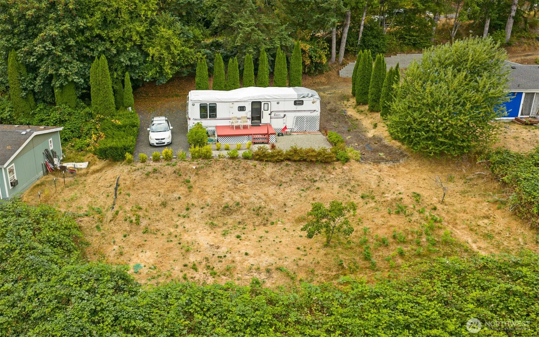 This 0.24-acre Hood Canal view lot is more than just raw land–it’s ready to go! Water, power, & a 3-bedroom septic system are already installed! An awesome view deck & established landscaping are in place, + a clean 36’ 5thWheel RV offers a comfortable place to stay while you plan your build or enjoy weekend escapes. Take in panoramic views of the Union River Valley, Hood Canal Basin, and even Mount Rainier on clear days. Located in Beard’s Cove, enjoy the private waterfront park, pool, & more! Just min. to Belfair State Park/Tahuya trails/shopping/Hwy 3. Construction loans are available! Solid setup. Waterfront Community Perks. Smart buy!