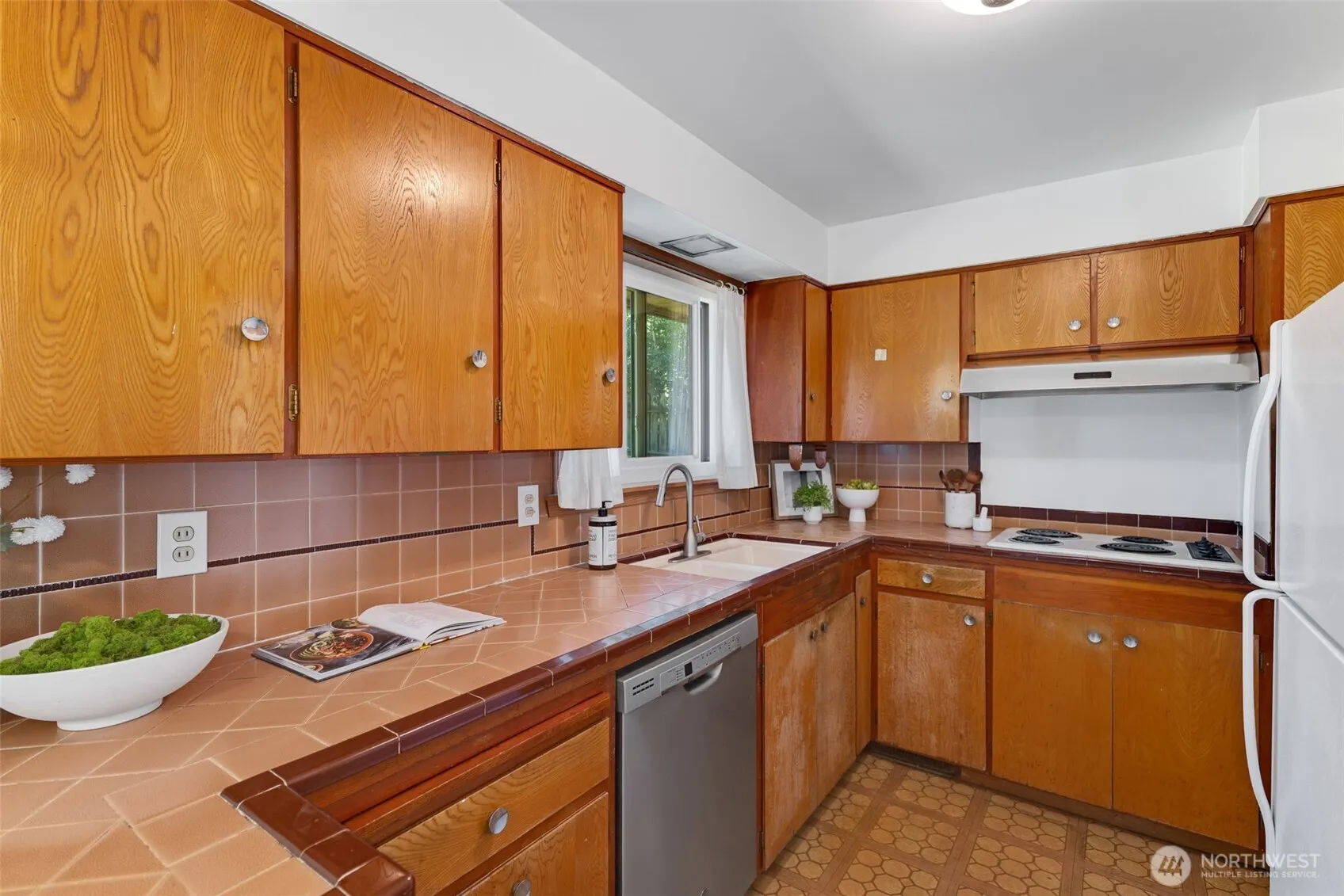 First time on the market for this solid built Mid Century home in Shoreline, and what a fantastic opportunity it is! The main floor layout lets in a ton of natural light, brightening up the beautiful living room, three bedrooms and original hardwood floors. The lower level is set up as a separate unit, with kitchen, two bedrooms and living room; perfect for a savvy buyer wanting rental income, or friends and other guests can have their own living space and privacy when they visit. The backyard is large with perennial plantings and offers many possibilities for a gardener, or even a DADU. Recent zoning changes and proximity to Light Rail contribute to this opportunity, as well as nearby parks, shopping, transit, and great schools.