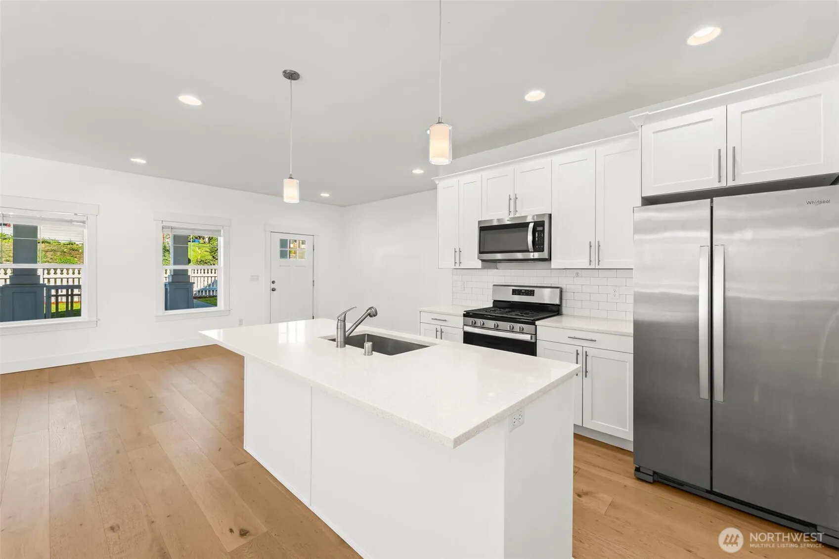 $10,000 Buyer Bonus! This beautifully crafted two story home features an inviting open-concept design, cozy fireplace, & vaulted ceilings, offering the perfect blend of comfort & style. The bright & airy kitchen boasts quartz countertops, stainless steel appliances, & crisp white cabinetry. The main level primary suite is a retreat of its own, complete with a walk-in closet & luxurious 5-piece bath featuring an oversized shower & quartz countertops. Upstairs you’ll find two additional bedrooms linked by a bonus room with vaulted ceilings and bathroom. Enjoy year-round outdoor living with fully fenced & landscaped yard. A double-car garage adds convenience, all located seconds from Lakeland Village golf course, and boat launch!
