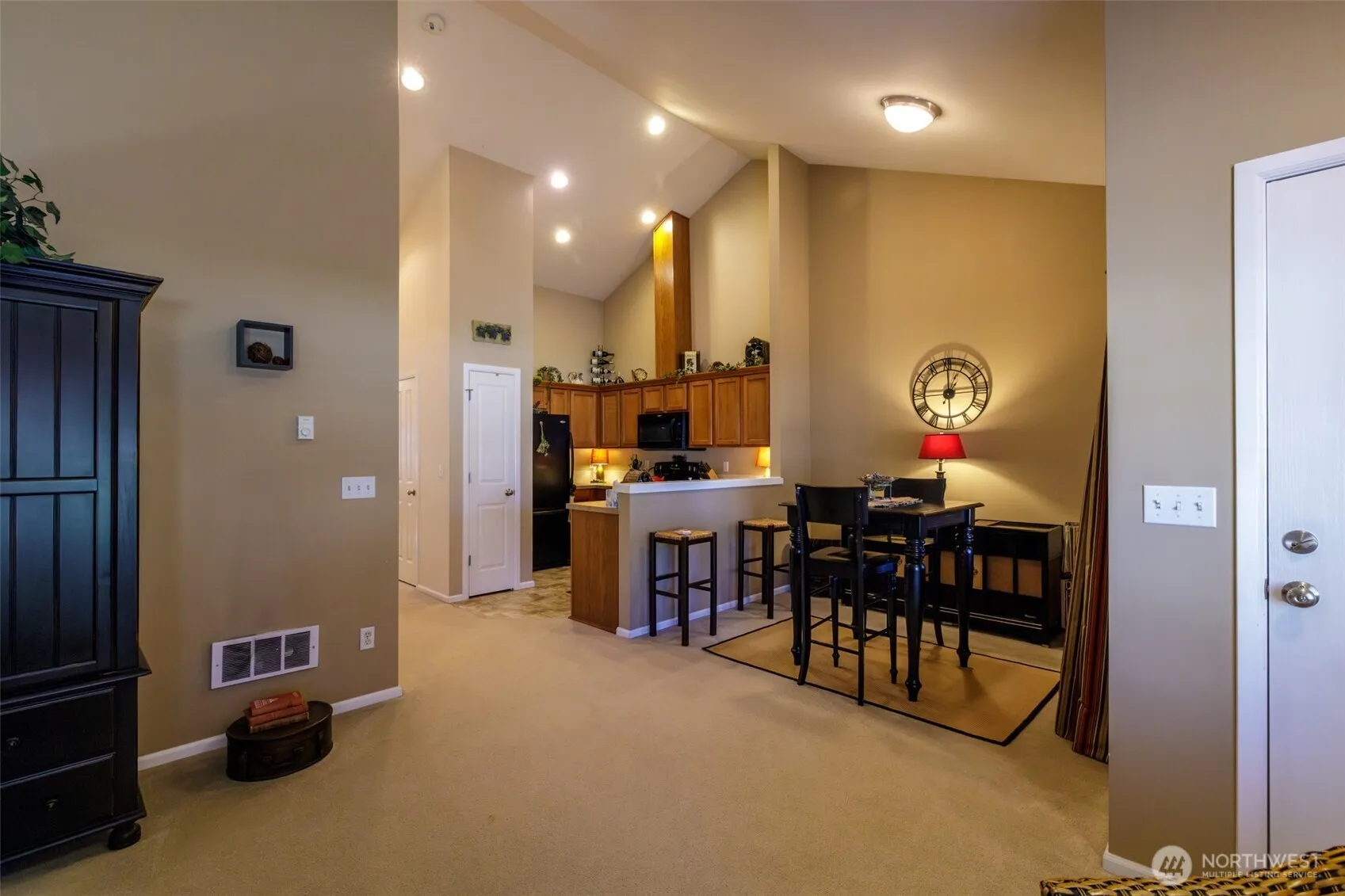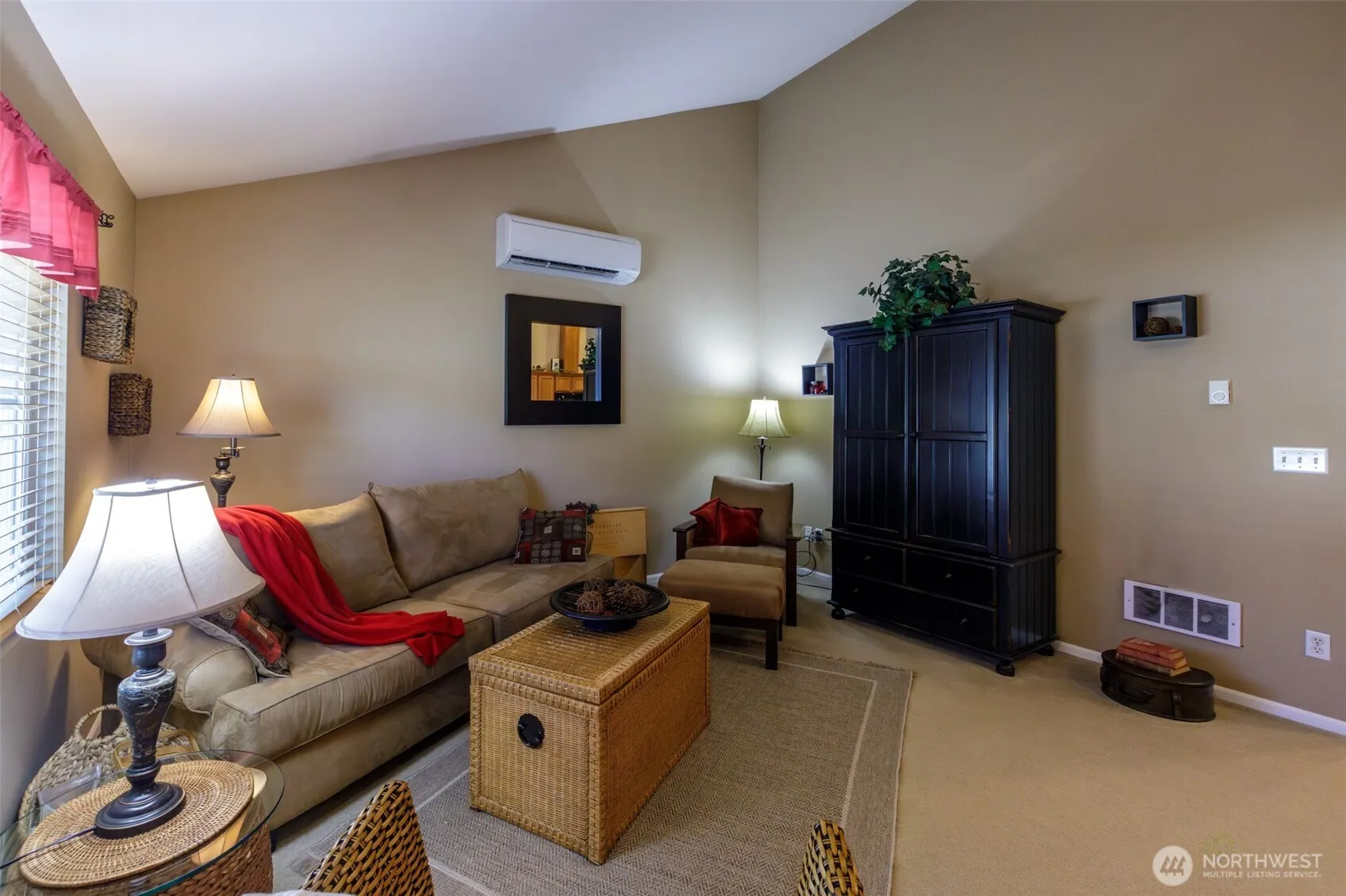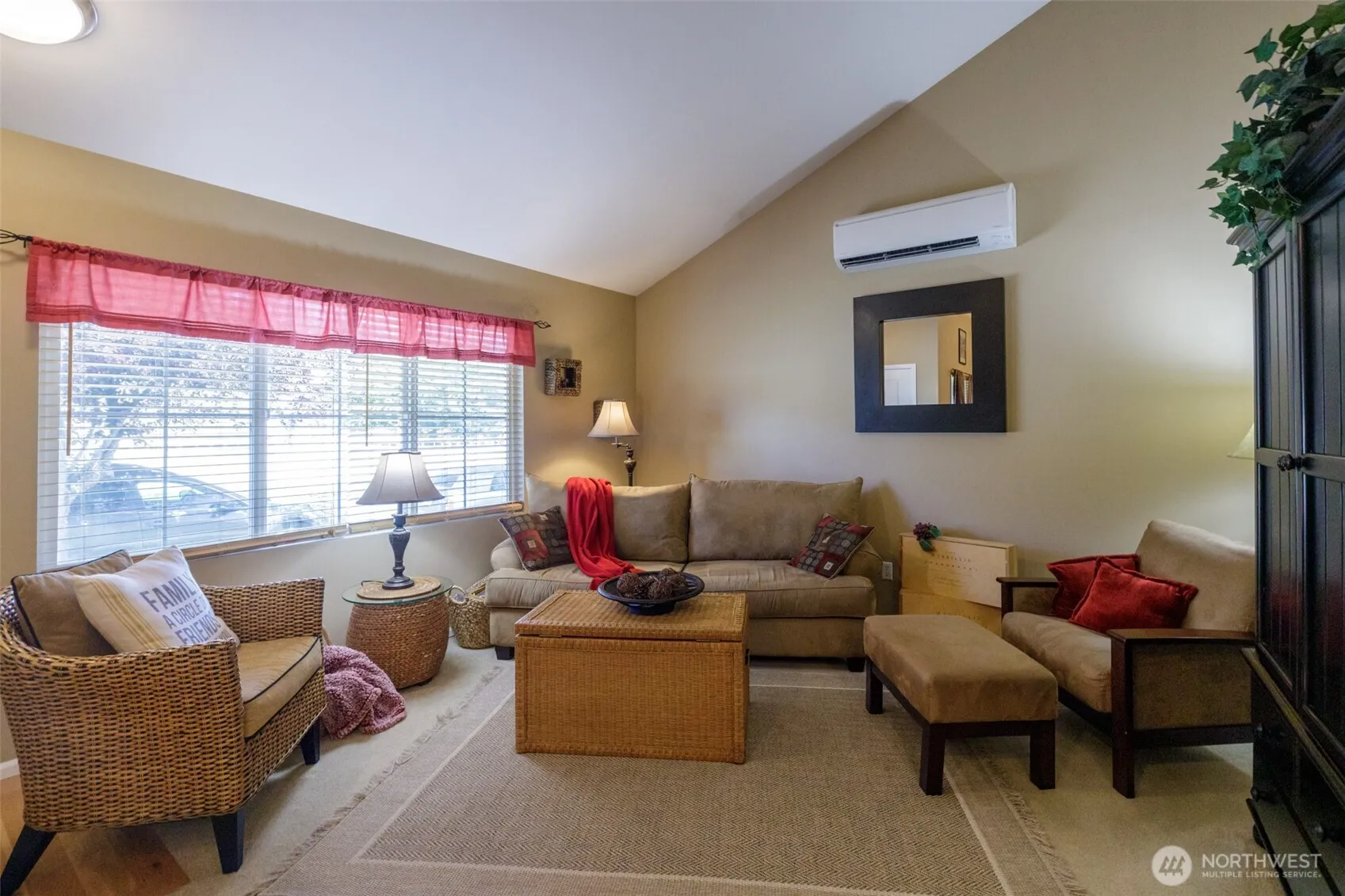Welcome to this charming and cozy home that is immaculate in every way! Discover the perfect blend of comfort and convenience with a bright and airy interior with cathedral ceilings. Home features spacious open concept layout filled with natural light. Two spacious bedrooms and one bath make this home move in ready! Kitchen has pantry and all appliances stay w/home. Eating space is available in the bar area. Utility room is nice with storage and washer/dryer also comes with home. AC is in home just installed recently for those hot days! Low maintenance backyard with space for garden, place to relax. Front Porch area is nice to relax too! Close to park and to all amenities, schools and I-5. Don’t want to miss this home!