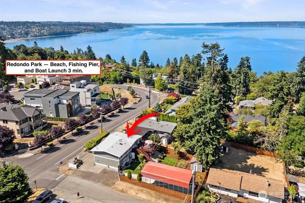 Stunning updated 3-b/room,3-bath home with peek-a-boo Sound views from the living room balcony&spacious deck.Fresh interior&exterior paint,brand-new roof,&cooling A/C add comfort& peace of mind.Enjoy oversized covered RV parking (40×18),a cozy firepit,fruit trees,& a fully fenced yard.Upper level offers all 3 bedrooms,including a spacious primary suite,plus a remodeled kitchen with custom cabinetry,quartz c/tops,&stainless steel appliances.Lower level features a large family room,extra finished room for office or gym, custom sauna with dressing area,& a garage outfitted with a full second kitchen—ideal for guests/entertaining.Minutes to Salty’s restaurant,Redondo boardwalk, beaches,parks,& major commuting routes,and Train Station!Must See!