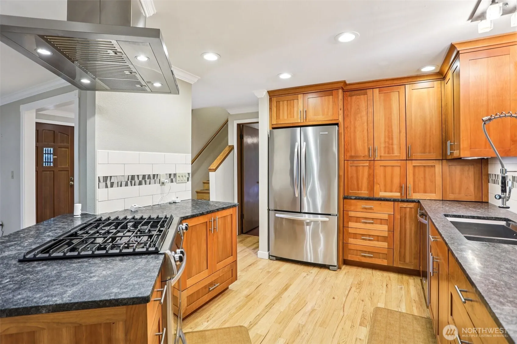 Unique custom built home sitting on quiet treed lot, only minutes to city of Lake Forest Park. Main floor includes upgraded Kitchen, Large living/Dining area, family room, huge 4th Bedroom with 3/4 bath and private deck. 2nd level has 3 more bedrooms and 2 full baths. Enjoy outdoor living on this custom wrap around decking made from South American hardwood, EPAY. The highlight of this lot is the bridge crossing over year round Lyons Creek for access. Amenities close by including I-5 and two Lite Rail Stations. Seller is providing Buyer with a American Home Shield warranty on home for One Year from date of closing.